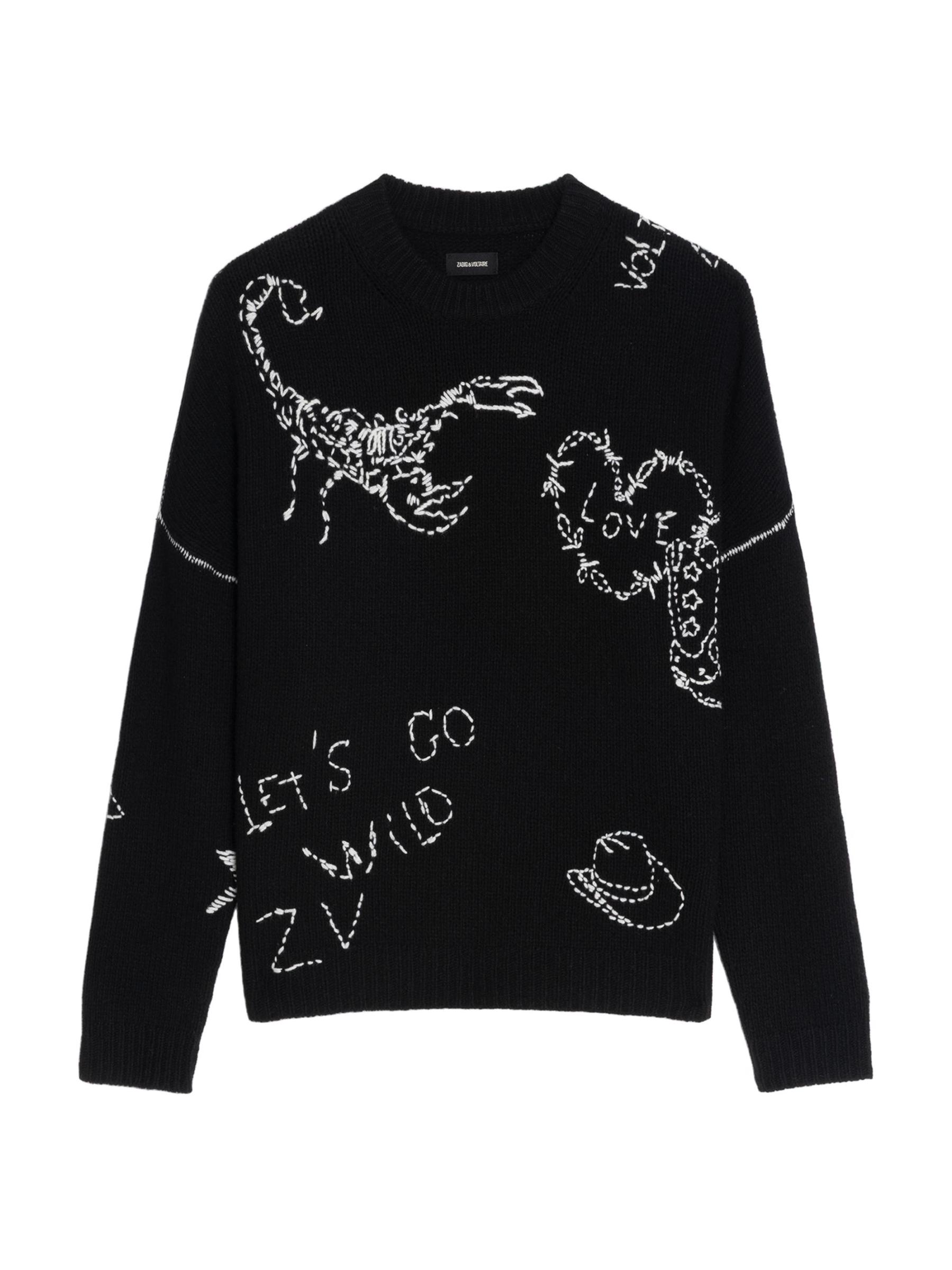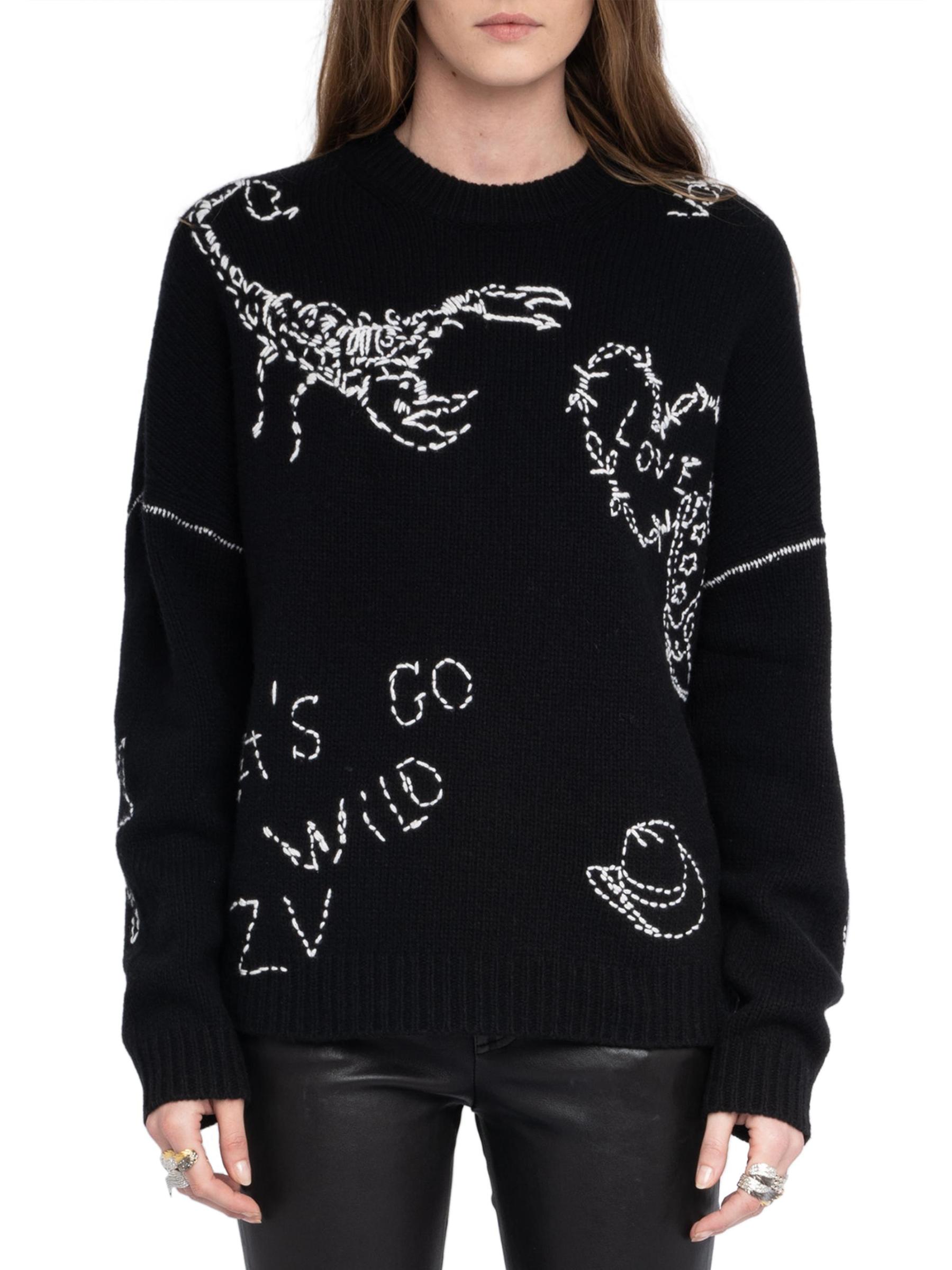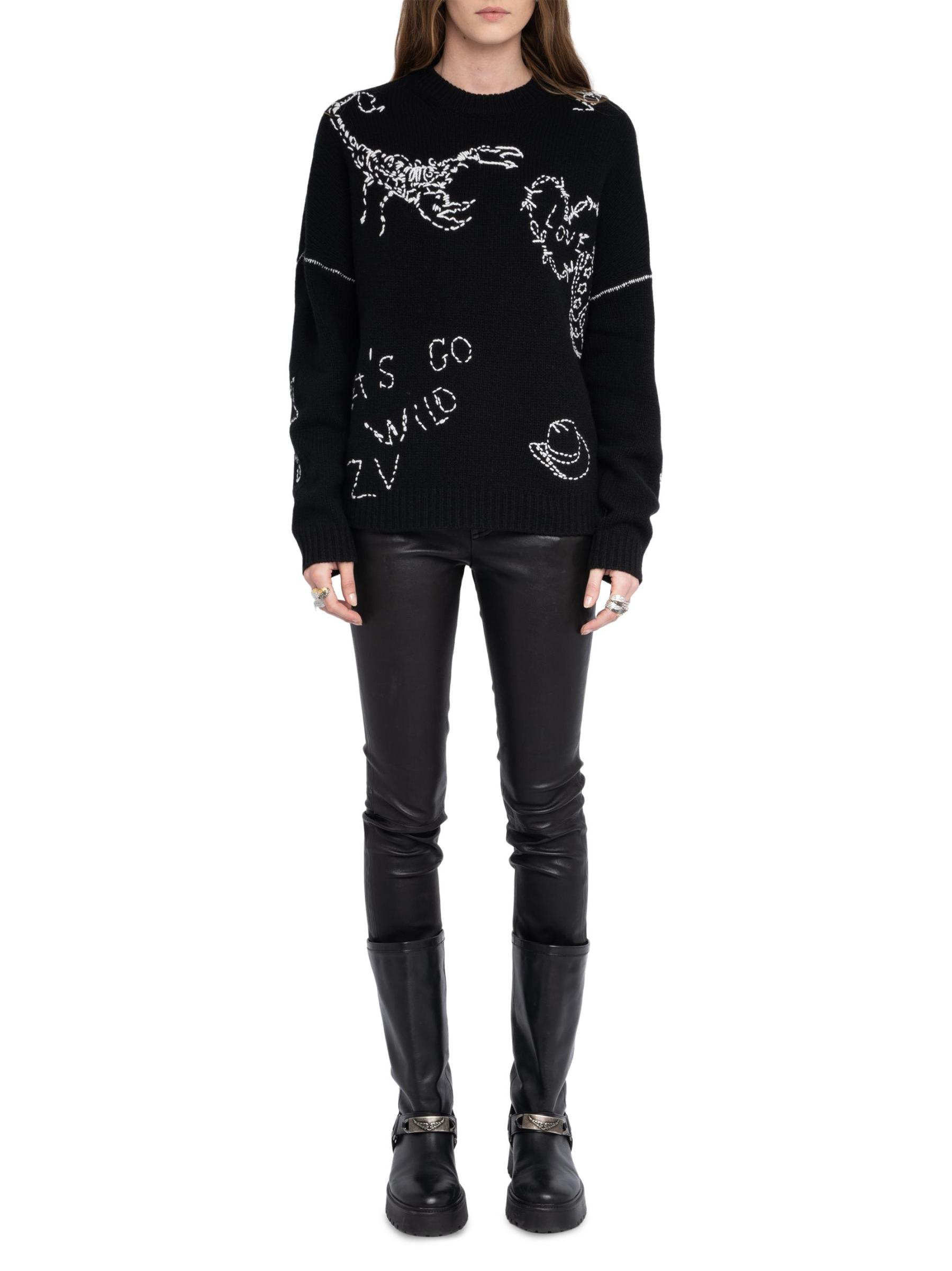 Voltaire مصنوعة من صوف الميرينو، وتتميز بزخارف مستوحاة من الغرب.رقبة مستديرة أكمام طويلة تقليم مضلع تسحب صوف ميرينو بنسبة 100% يُغسل في الغسالة مستوردة