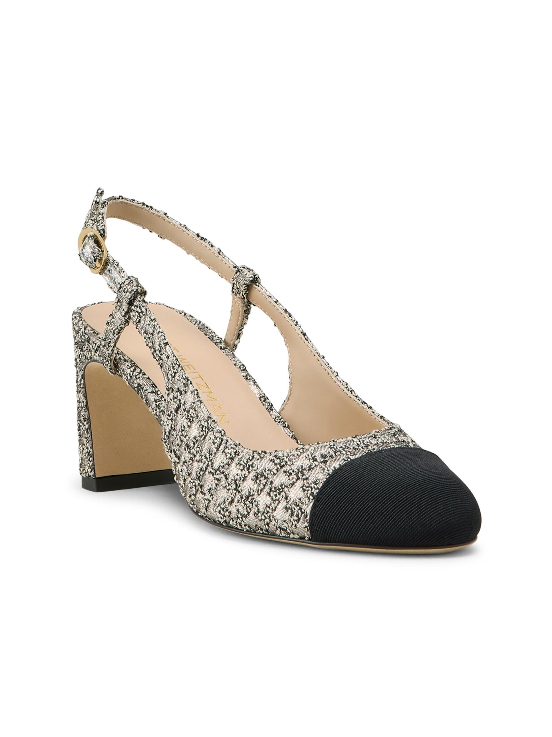 يتميز حذاء Babette slingback من Stuart Weitzman المصنوع من قماش الجاكار المزركش من Stuart Weitzman بحزام مشبك قابل للتعديل ومقدمة بقبعة مصنوعة من الحرير المضلع وكعب مدبب.