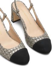 يتميز حذاء Babette slingback من Stuart Weitzman المصنوع من قماش الجاكار المزركش من Stuart Weitzman بحزام مشبك قابل للتعديل ومقدمة بقبعة مصنوعة من الحرير المضلع وكعب مدبب.إصبع اللوز إغلاق بمشبك الجزء العلوي مصنوع من القماش والجلد بطانة من الجلد والنسيج نعل جلدي