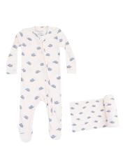 تحتوي هذه المجموعة المكونة من قطعتين من Angel Dear على كرة قدم مع بطانية قماشة مطابقة في طبعة قبعة رعاة البقر.رقبة مستديرة أكمام طويلة ذو قدم إغلاق بسحّاب أمامي مودال/سباندكس يُغسل في الغسالة مستوردة