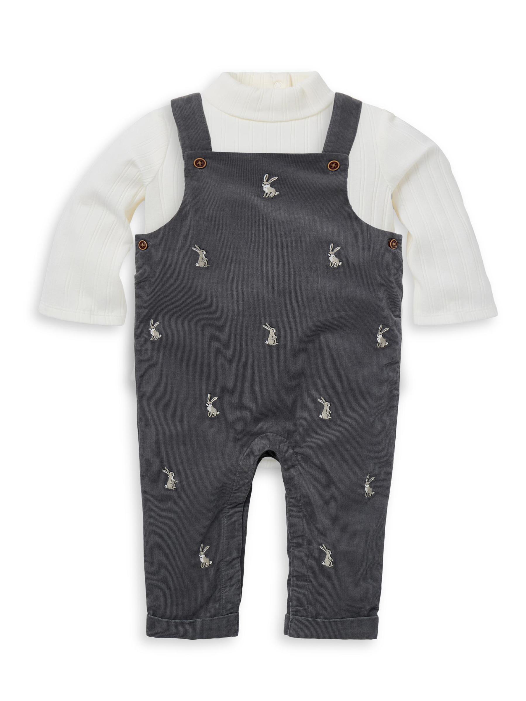 تشتمل مجموعة Janie and Jack المكونة من قطعتين على بدلة داخلية بياقة عالية مصنوعة من القطن الناعم. تتميز الملابس الداخلية القطنية المصنوعة من القطن بأرانب مطرزة وأحزمة بأزرار. يُغسل في الغسالة. مستوردة.