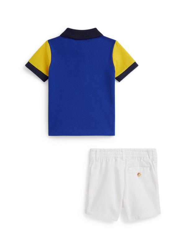 تأتي مجموعة بولو رالف لورين المكونة من قطعتين مع قميص بولو مستوحى من الرجبي وشورت تشينو. 100% قطن. يُغسل في الغسالة. مُستورَد.