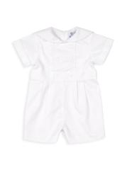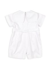 شورت أبيض حلو مصنوع بأسلوب البحارة الموحد من البيكيه القطني الفاخر.طوق سايلور أكمام قصيرة سحّاب خلفي مع زر خلفي على الحزام أزرار داخلية قطن البطانة: بوليستر/قطن يُغسل في الغسالة مستوردة