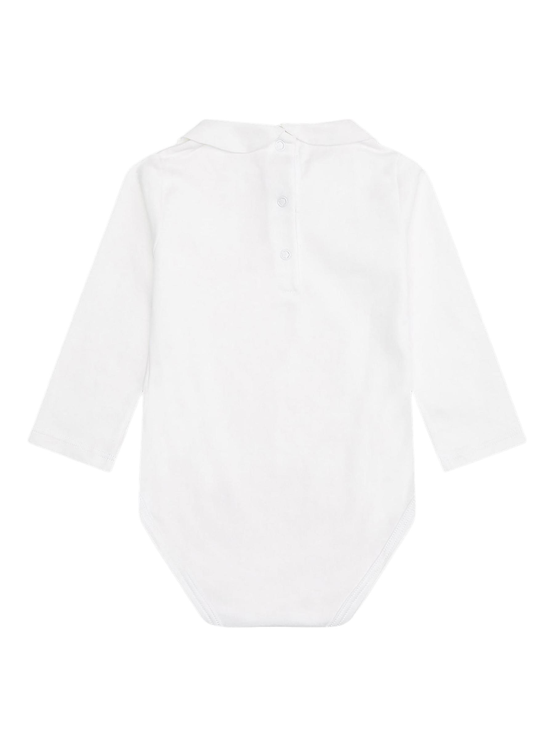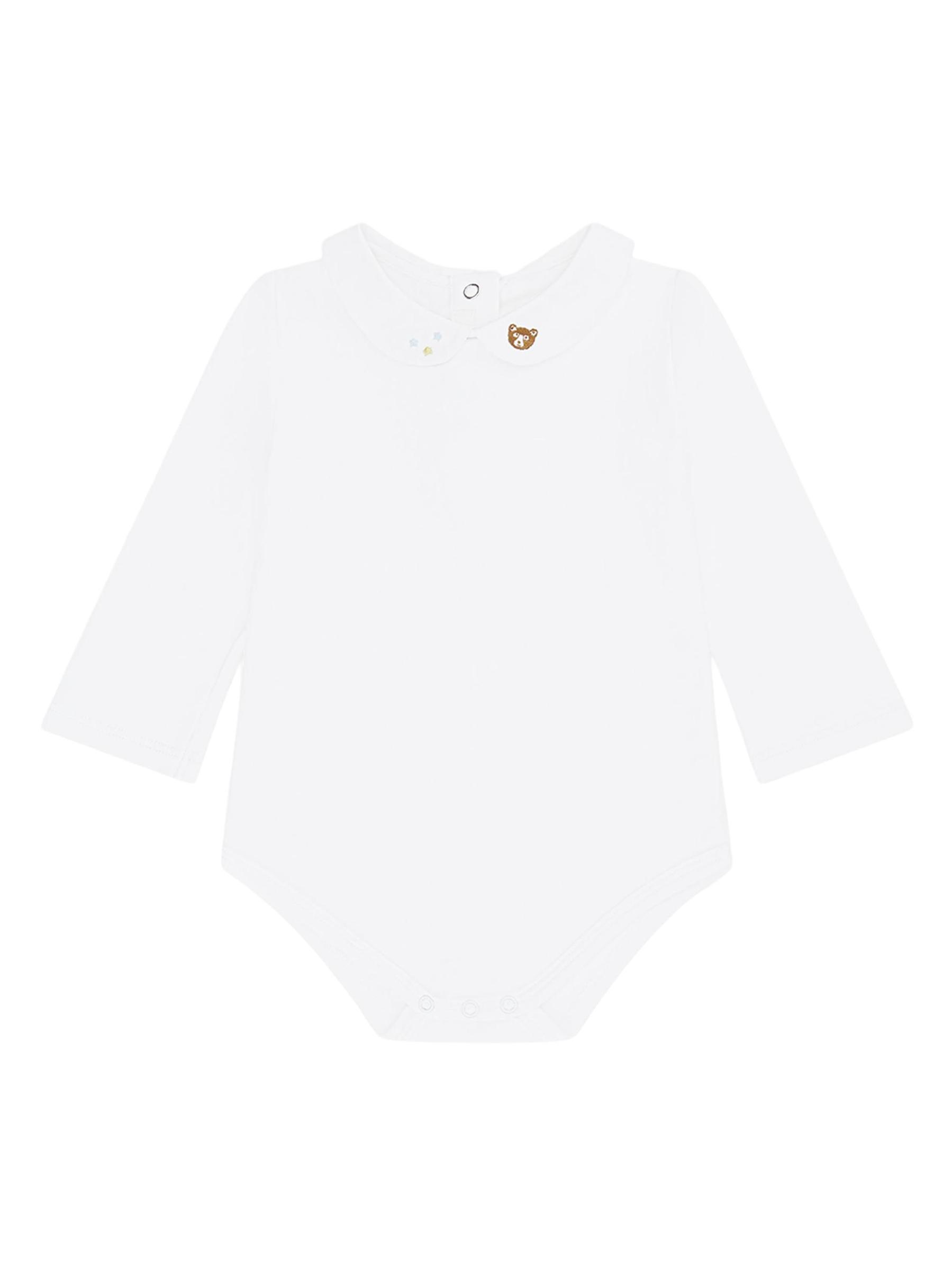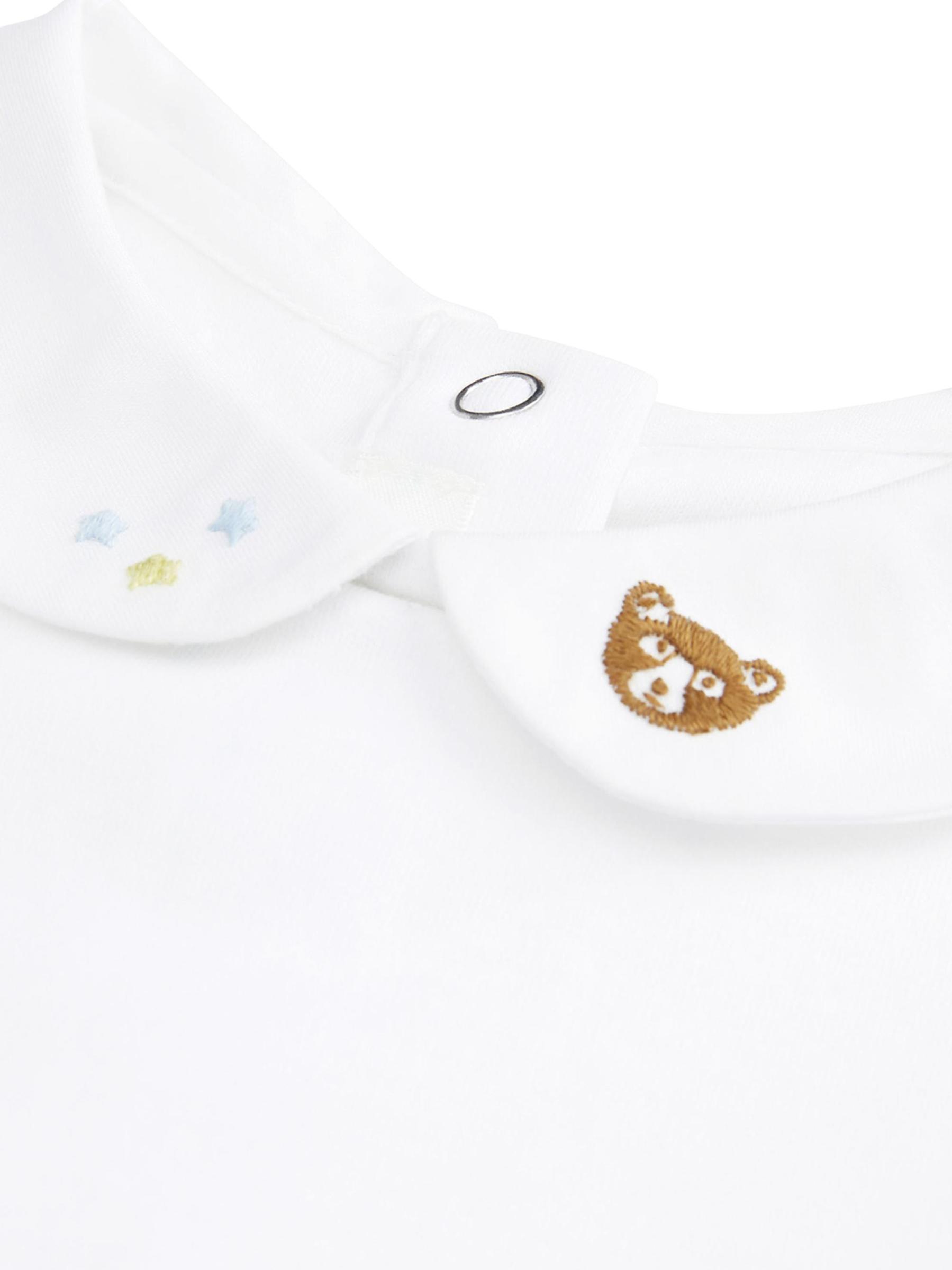 تتميّز بدلة ماري شانتال ذات الأكمام الطويلة المصنوعة من القطن بتصميم دب مطرّز يدويًا وزخرفة نجمة على ياقة بيتر بان.