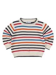 تتميز سترة Florence Eiseman المحبوكة ذات الرقبة المستديرة المصنوعة من القطن بنمط مخطط مرتفع متعدد الألوان.رقبة مستديرة أكمام طويلة تسحب قطن يُغسل في الغسالة مستوردة