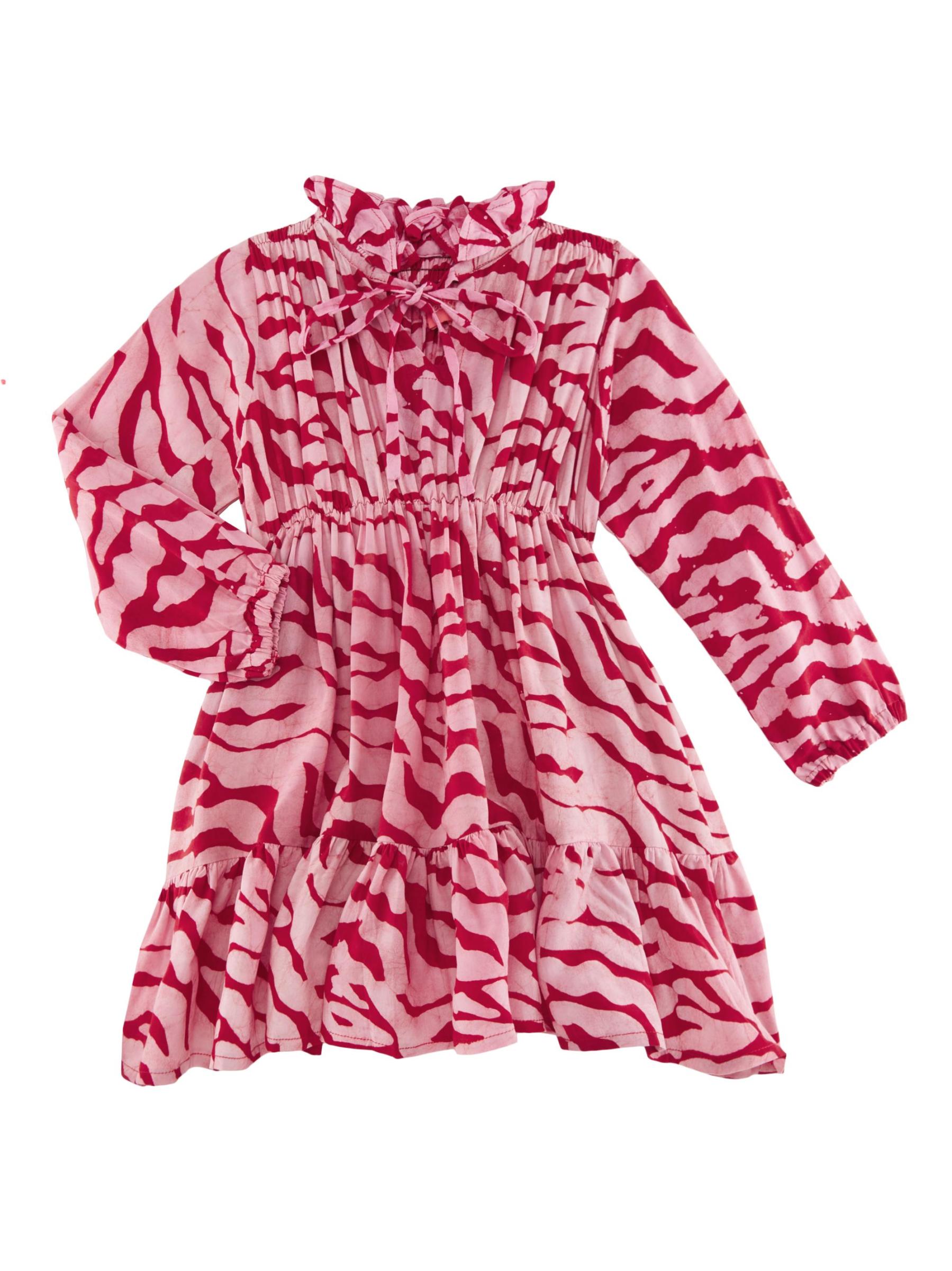 صُنع فستان Tayo ذو الطباعة التجريدية من Elisamama من مزيج القطن ويتميز برقبة مكشكشة.ياقة مكشكشة ربطة عنق أكمام طويلة وأساور مطاطية خصر مطاطي تسحب 50% قطن/ 50% حرير صناعي يُغسل في الغسالة مستوردة