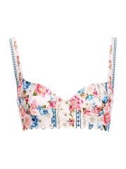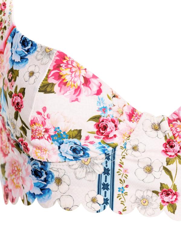 تتميّز بلوزة البكيني «بالينا ميراكي» المصنوعة من قماش مطاطي من أغوا بينديتا بنقشة الزهور وحافة صدفيّة.رقبة على شكل قلب أحزمة قابلة للتعديل سلك سفلي إغلاق بمشبك خلفي 80% بوليستر/ 20% إليستين البطانة: 88% بوليستر/ 12% إيلاستين غسيل يدوي مستوردة