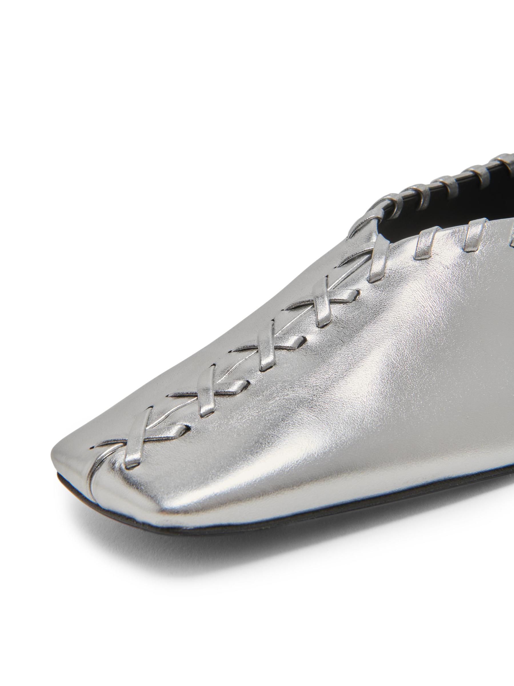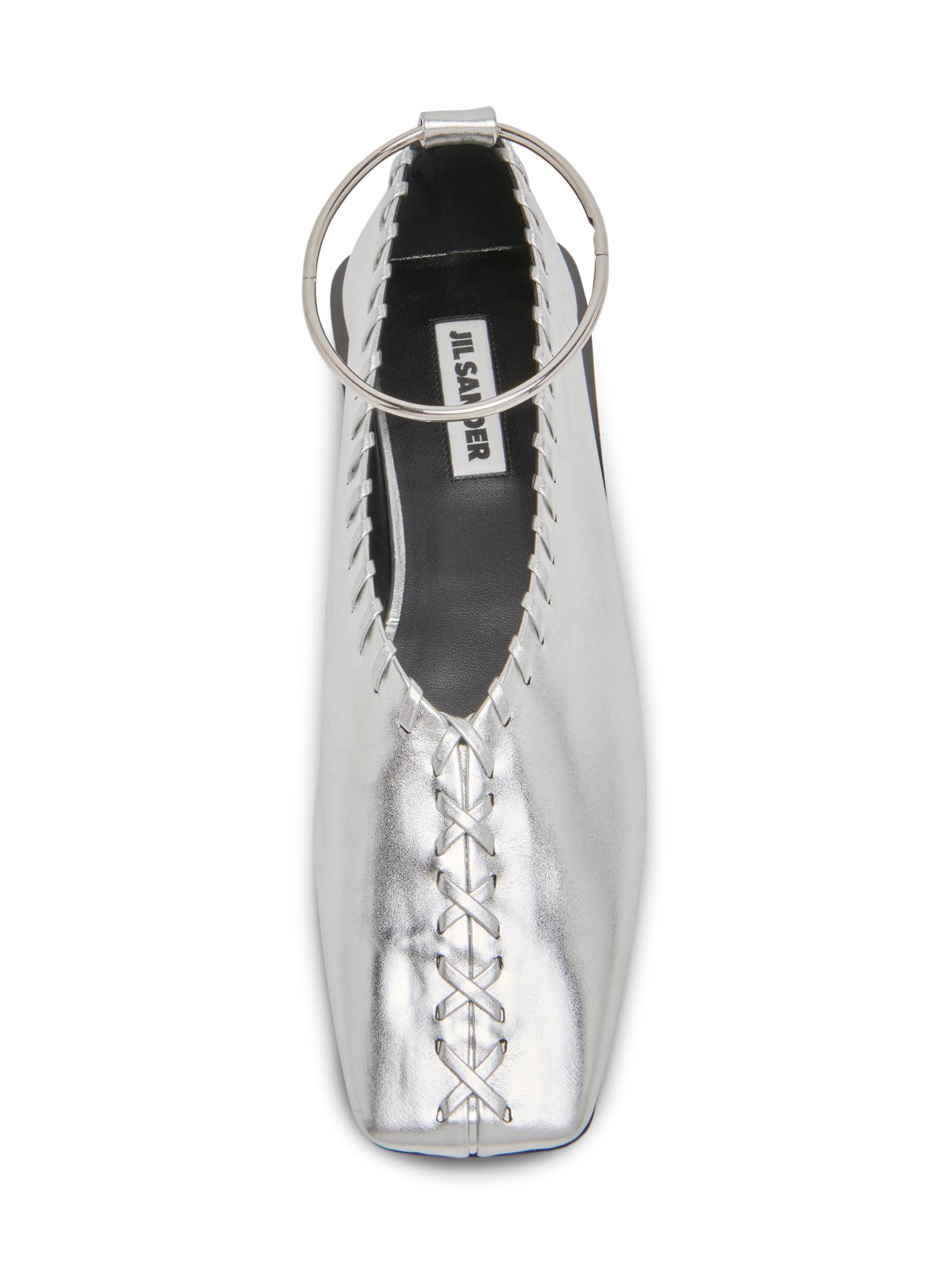 تتميز أحذية باليرينا المسطحة الأنيقة المصنوعة من الجلد الفاخر من جيل ساندر بمقدمة مربعة وتفاصيل بأربطة وحزام كاحل قابل للتمدد.