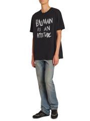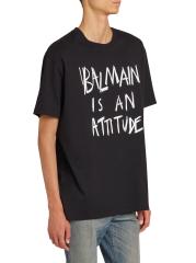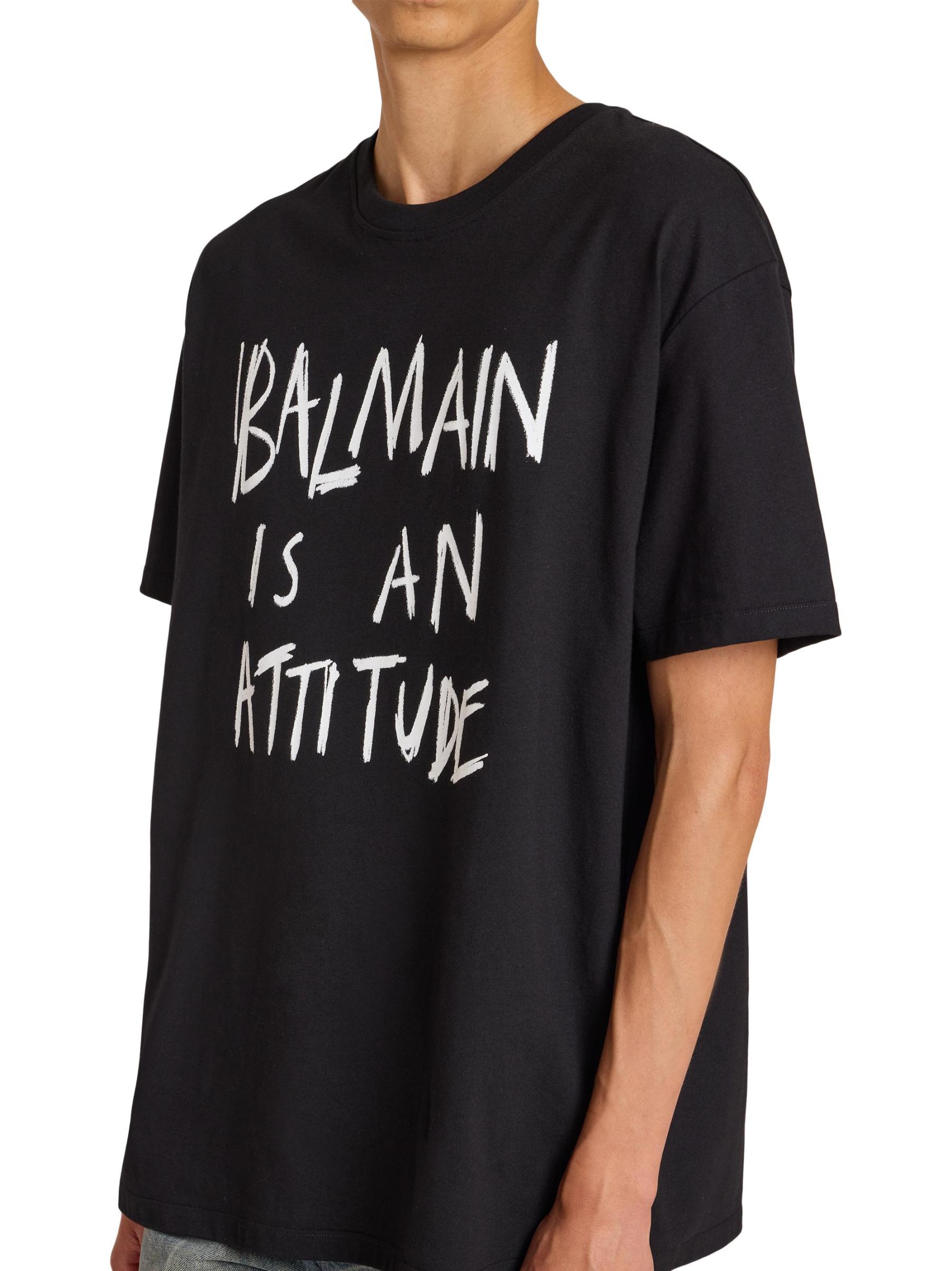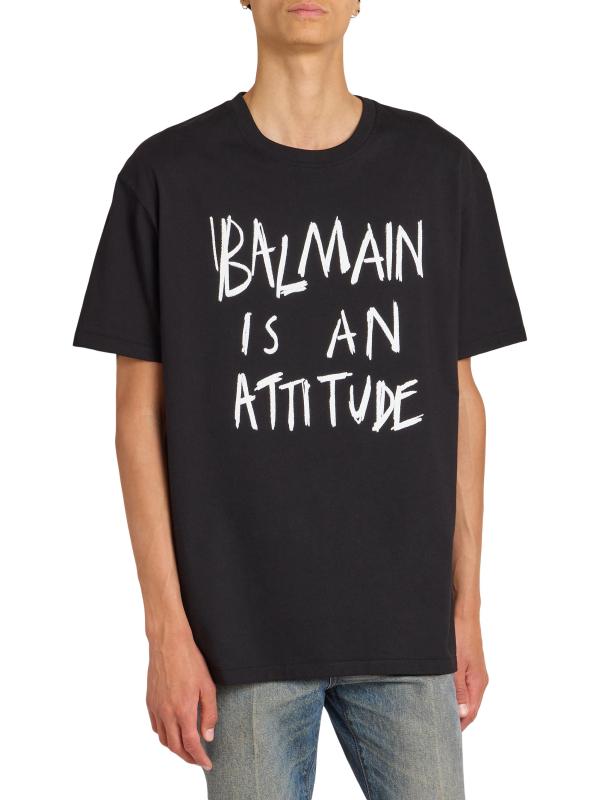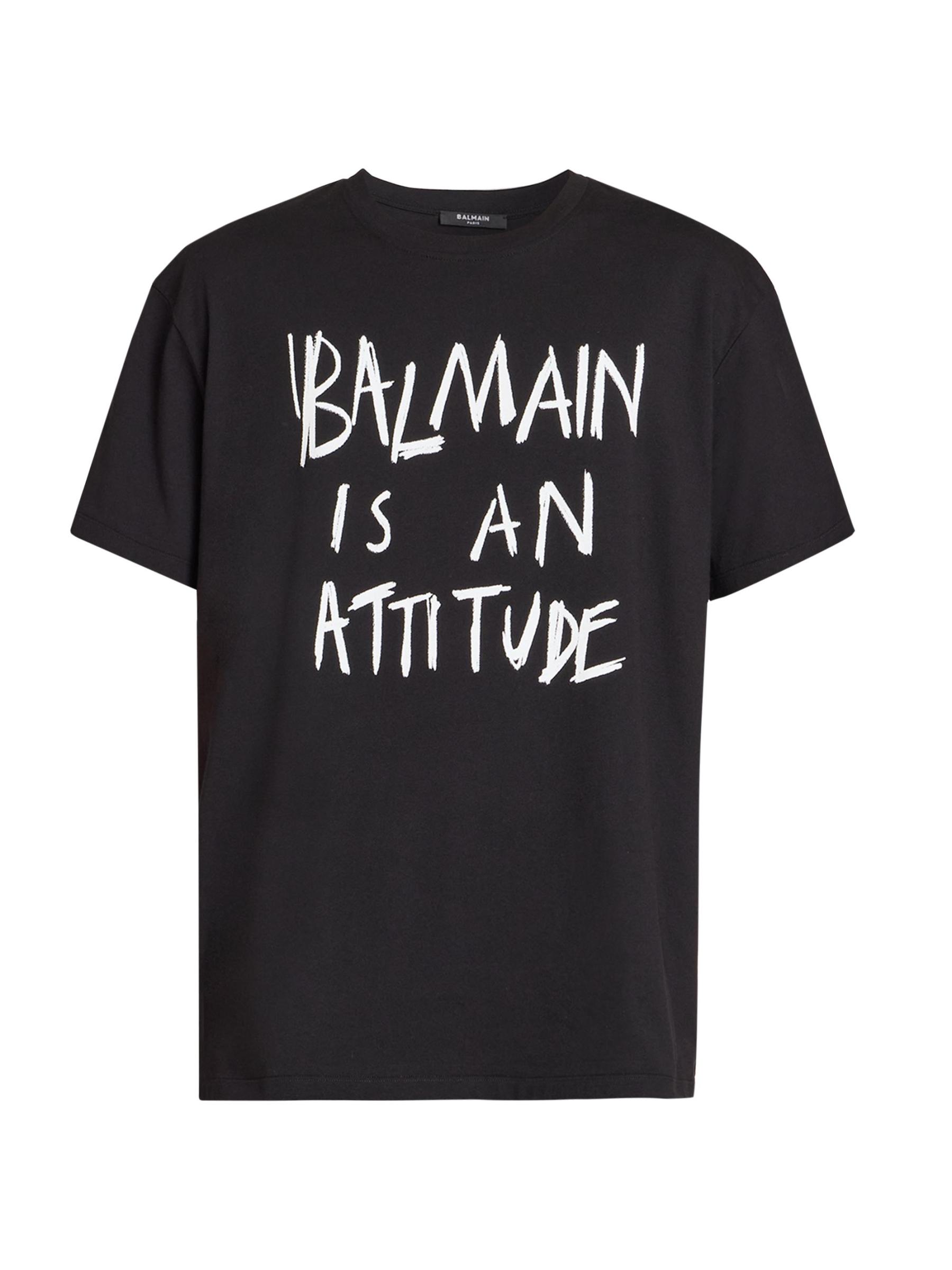 صُمم هذا القميص ذو الرقبة المستديرة من الجيرسيه القطني بعبارة «Balmain is a attitude» في الأمام.