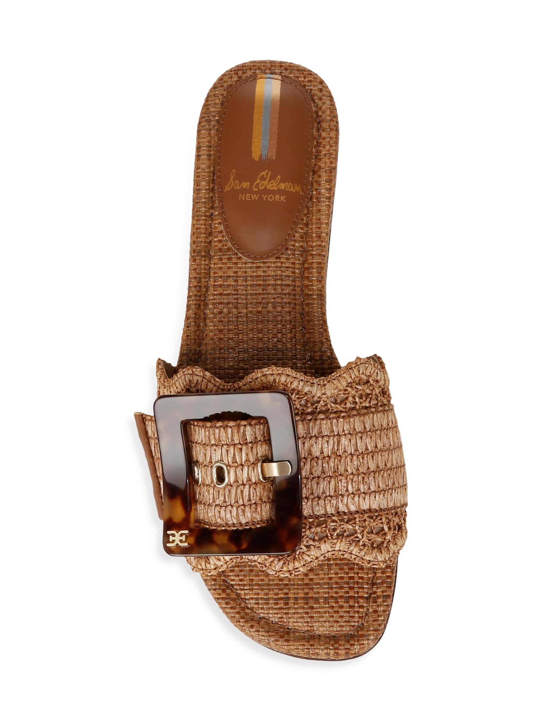 تتميز شرائح بامبي الأنيقة والراقية من سام إيدلمان بإبزيم على شكل صدف السلحفاة وتقليم صدفي لإحساس بالفخامة. يضمن التصميم سهل الارتداء والكعب المكدس الراحة والسهولة.