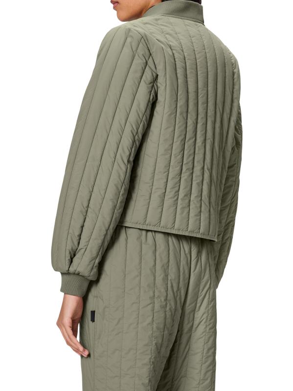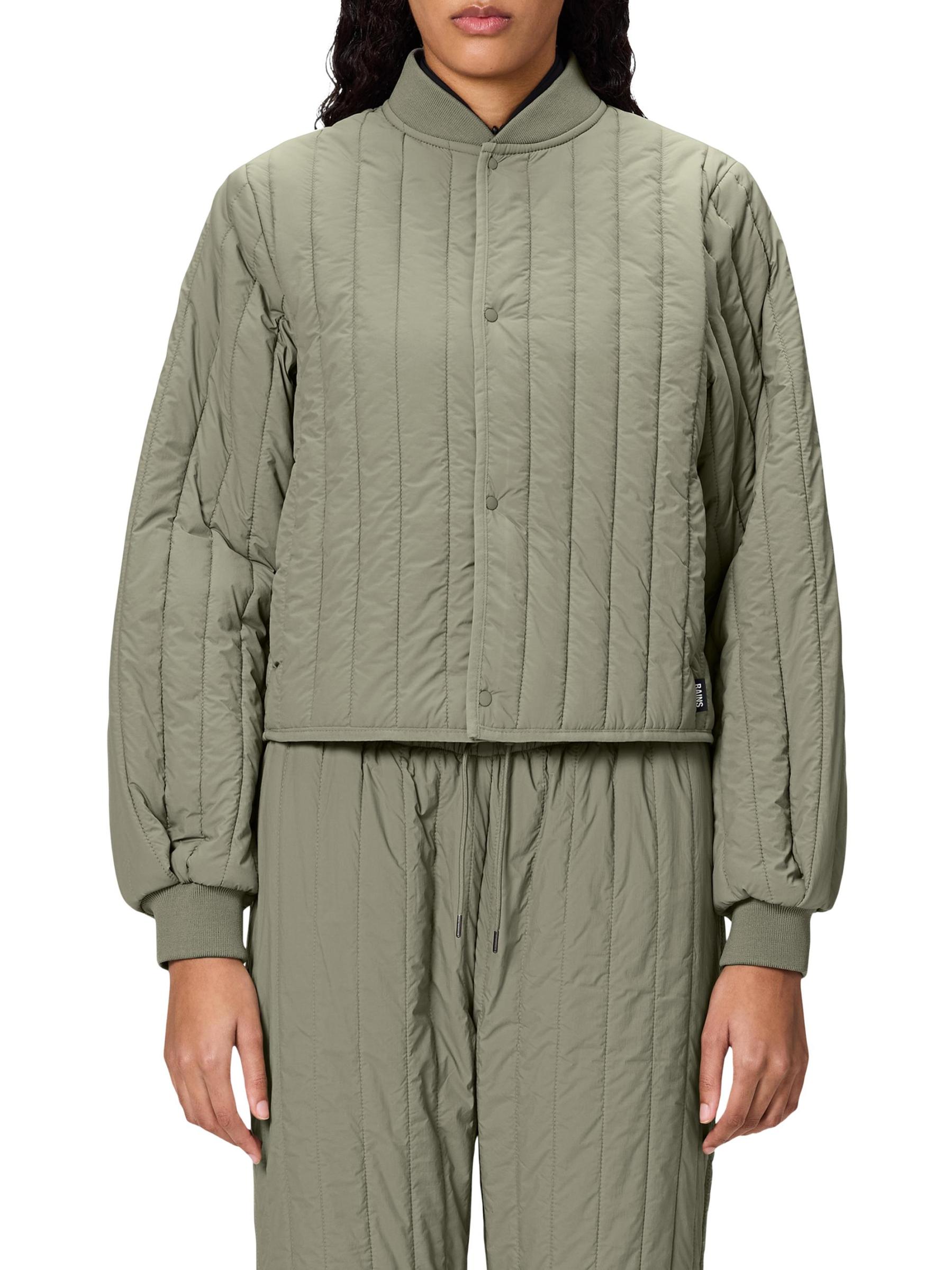من مجموعة Banja. جاكيت Banja bomber من Rains مصنوع من النايلون المبطن لحماية خفيفة الوزن. يتميز هذا الطراز بطوق بيسبول وجيوب جانبية عمودية وإغلاق بأزرار كبس بلون متناسق.طوق بيسبول أكمام طويلة وأساور محبوكة جيبان جانبيان إغلاق أمامي بمشبك 100% بولي أميد غسيل يدوي مستوردة