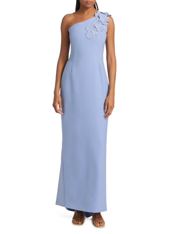 فستان برشلونة مزين بالزهور بكتف واحد