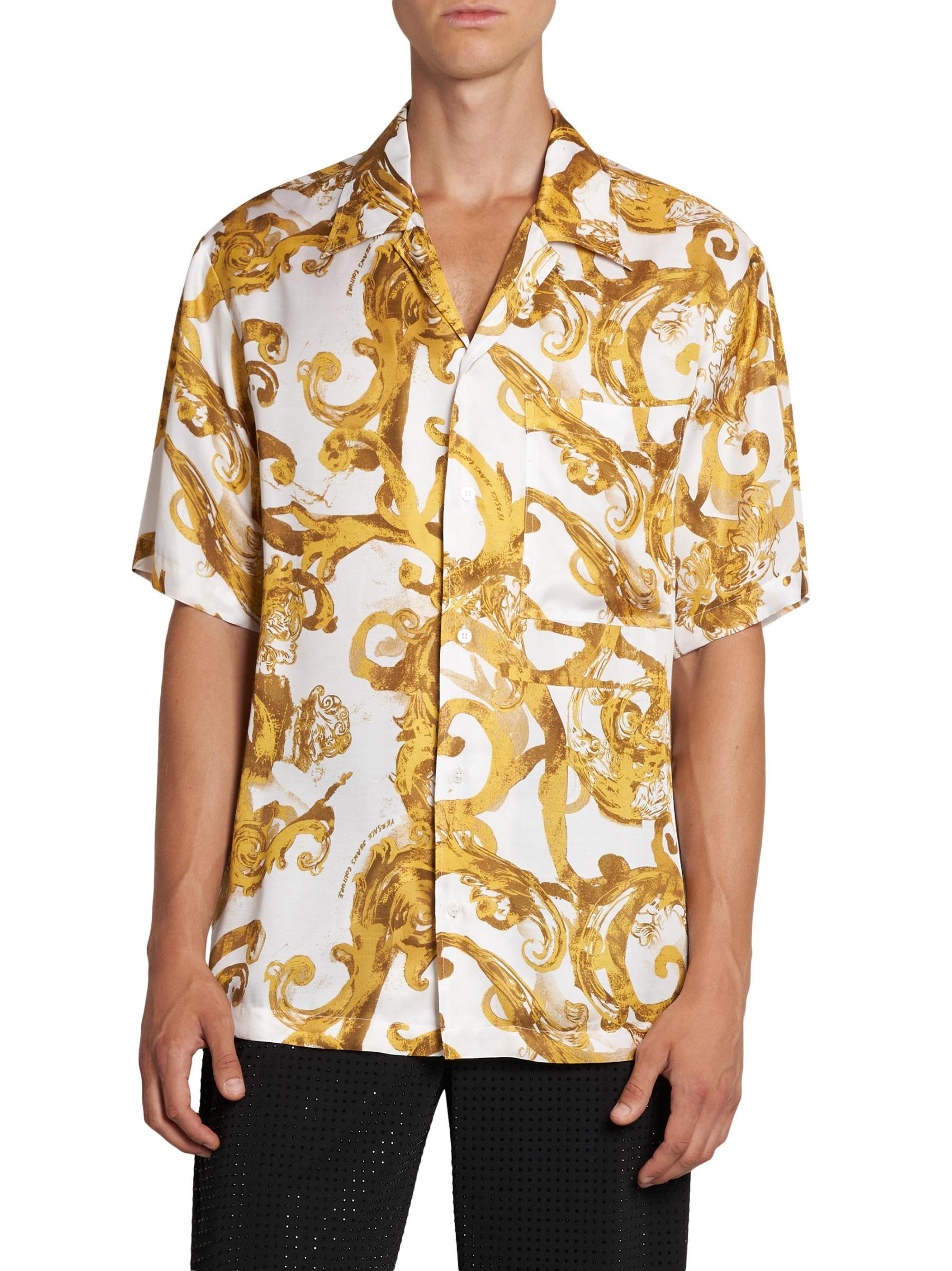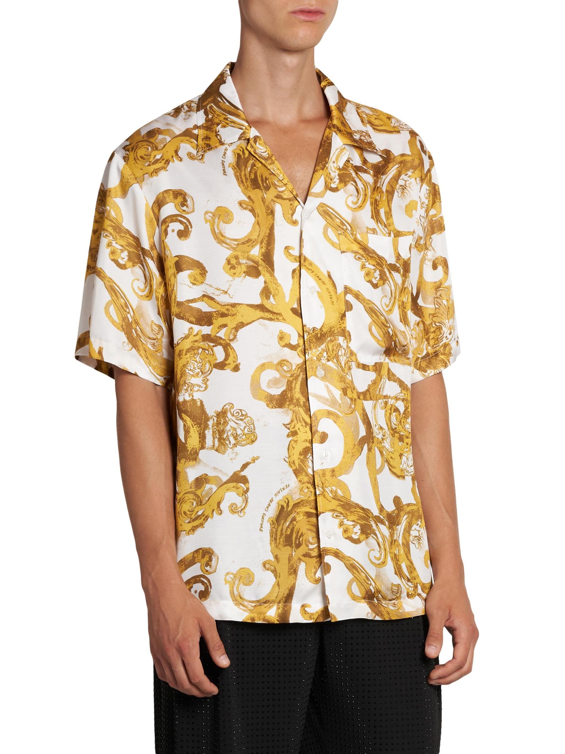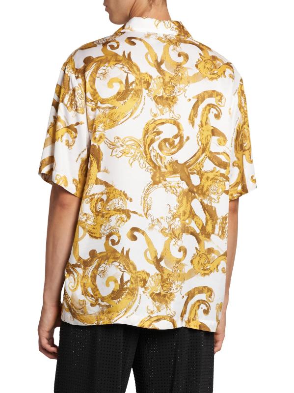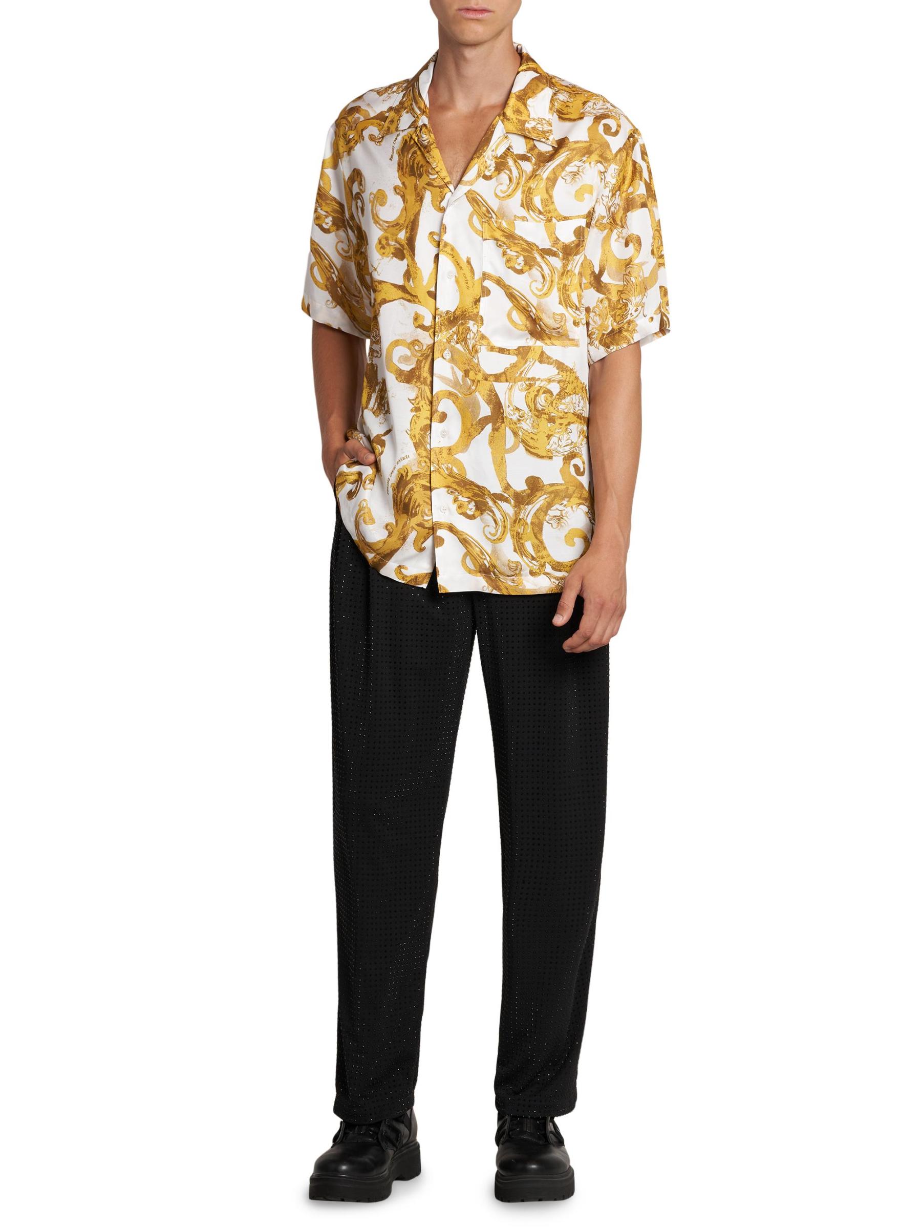 صُمم هذا القميص قصير الأكمام من فيرساتشي جينز في إيطاليا بطبعة مستوحاة من الطراز الباروكي.