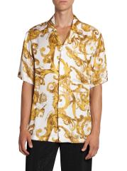 صُمم هذا القميص قصير الأكمام من فيرساتشي جينز في إيطاليا بطبعة مستوحاة من الطراز الباروكي.طوق المخيم أكمام قصيرة إغلاق بأزرار أمامية فيسكوز 100% تنظيف جاف صُنع في إيطاليا