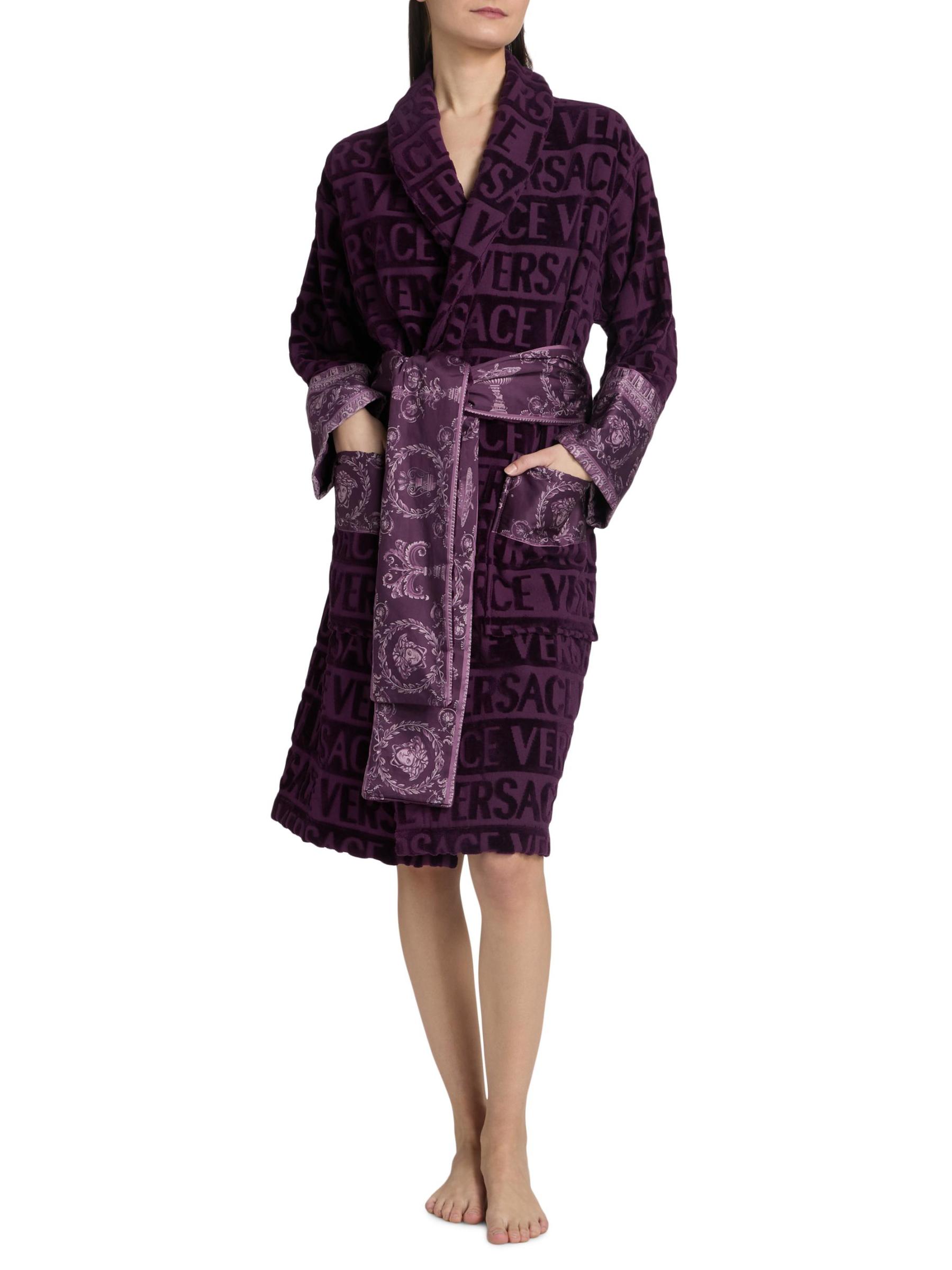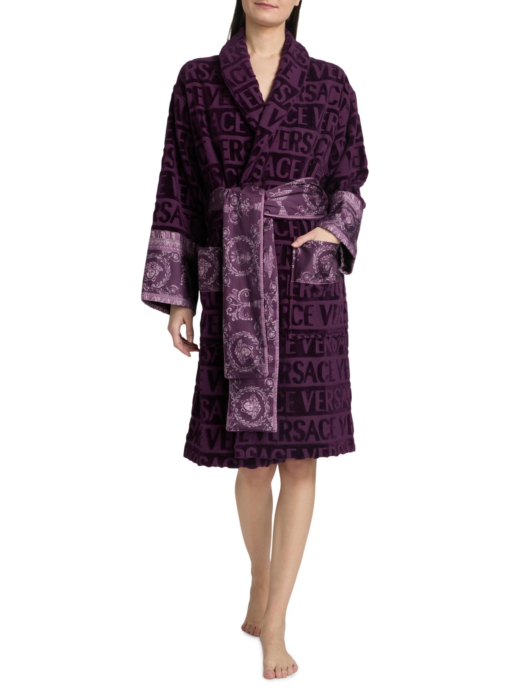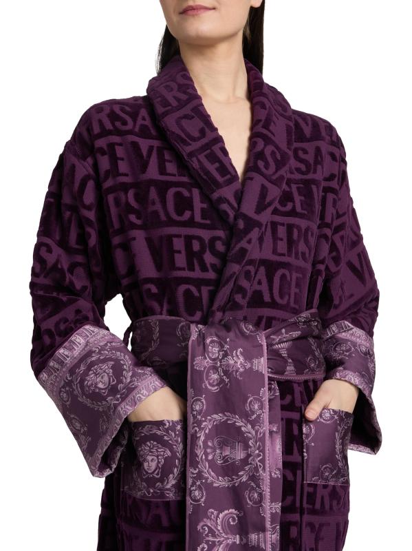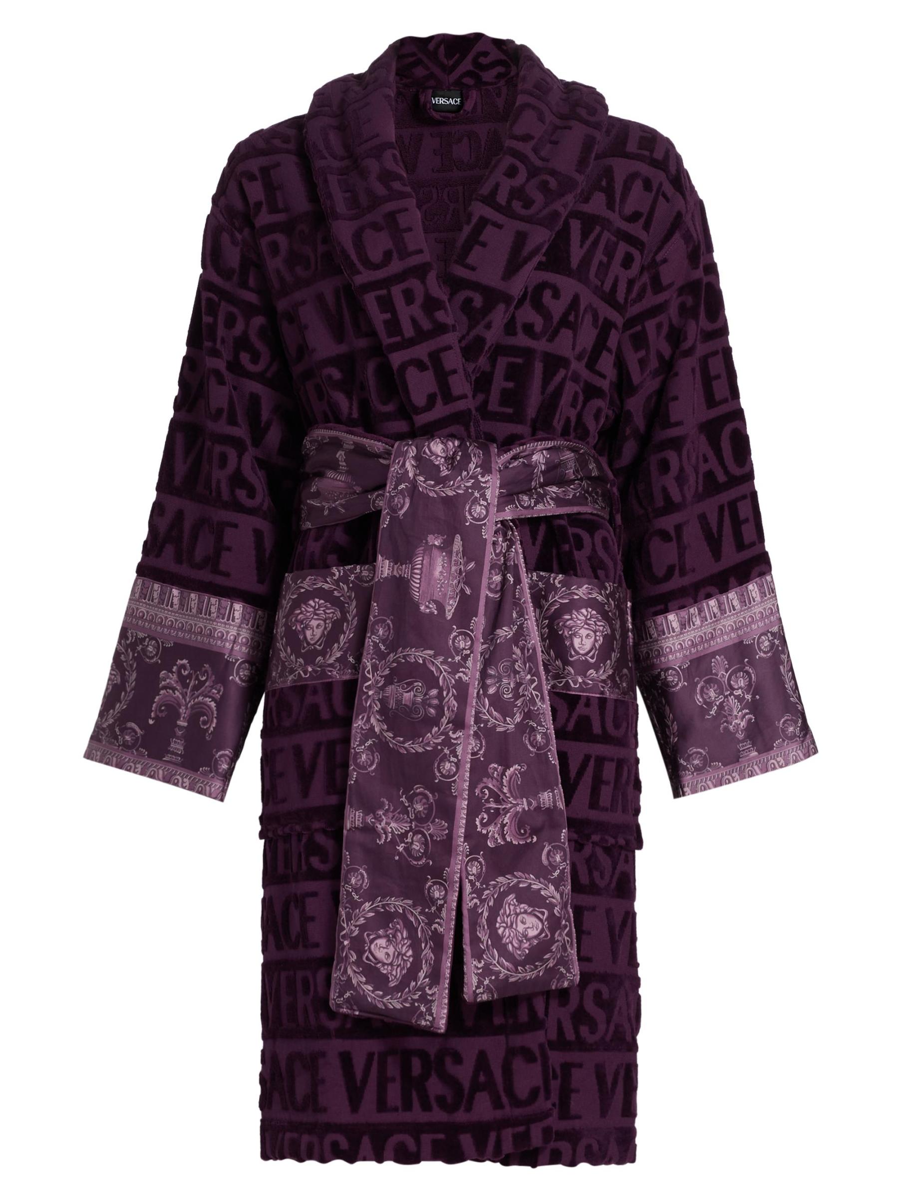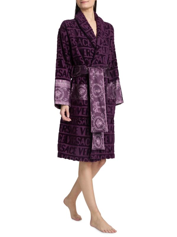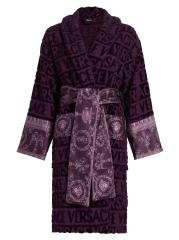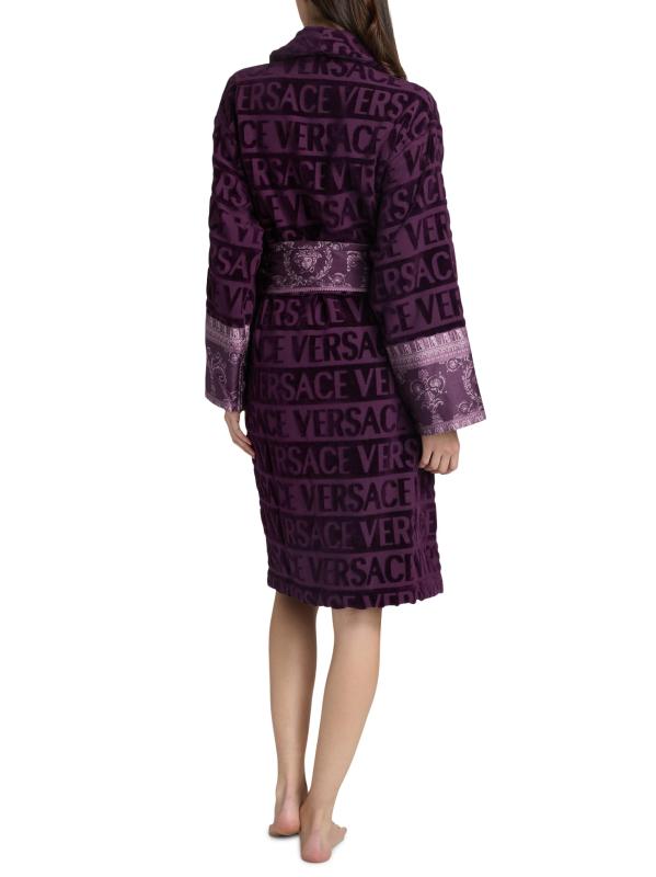 يتميز رداء الحمام هذا من فيرساتشي المصنوع من قطن تيري بشعار الماركة وياقة على شكل شال وحزام قابل للربط.