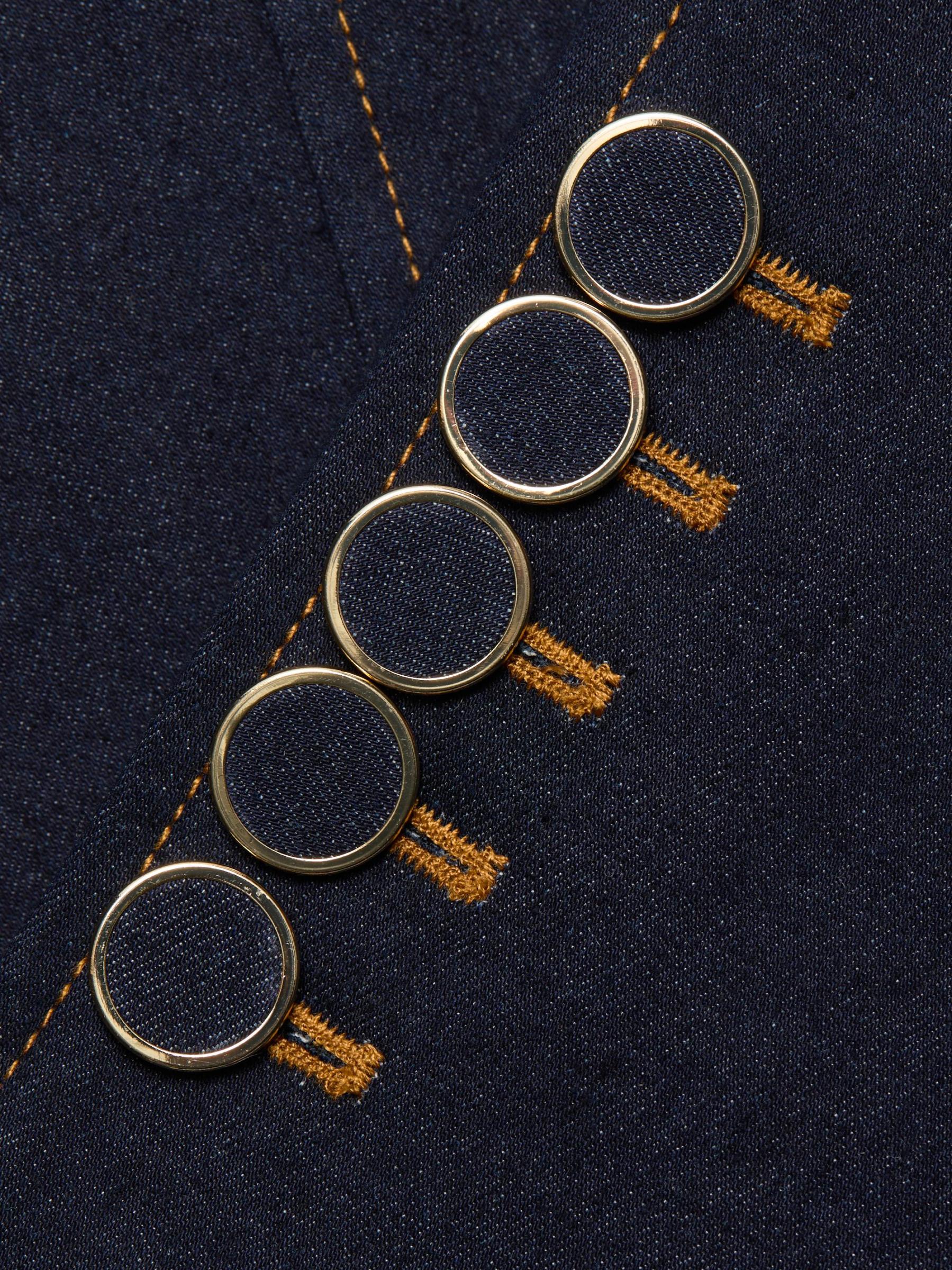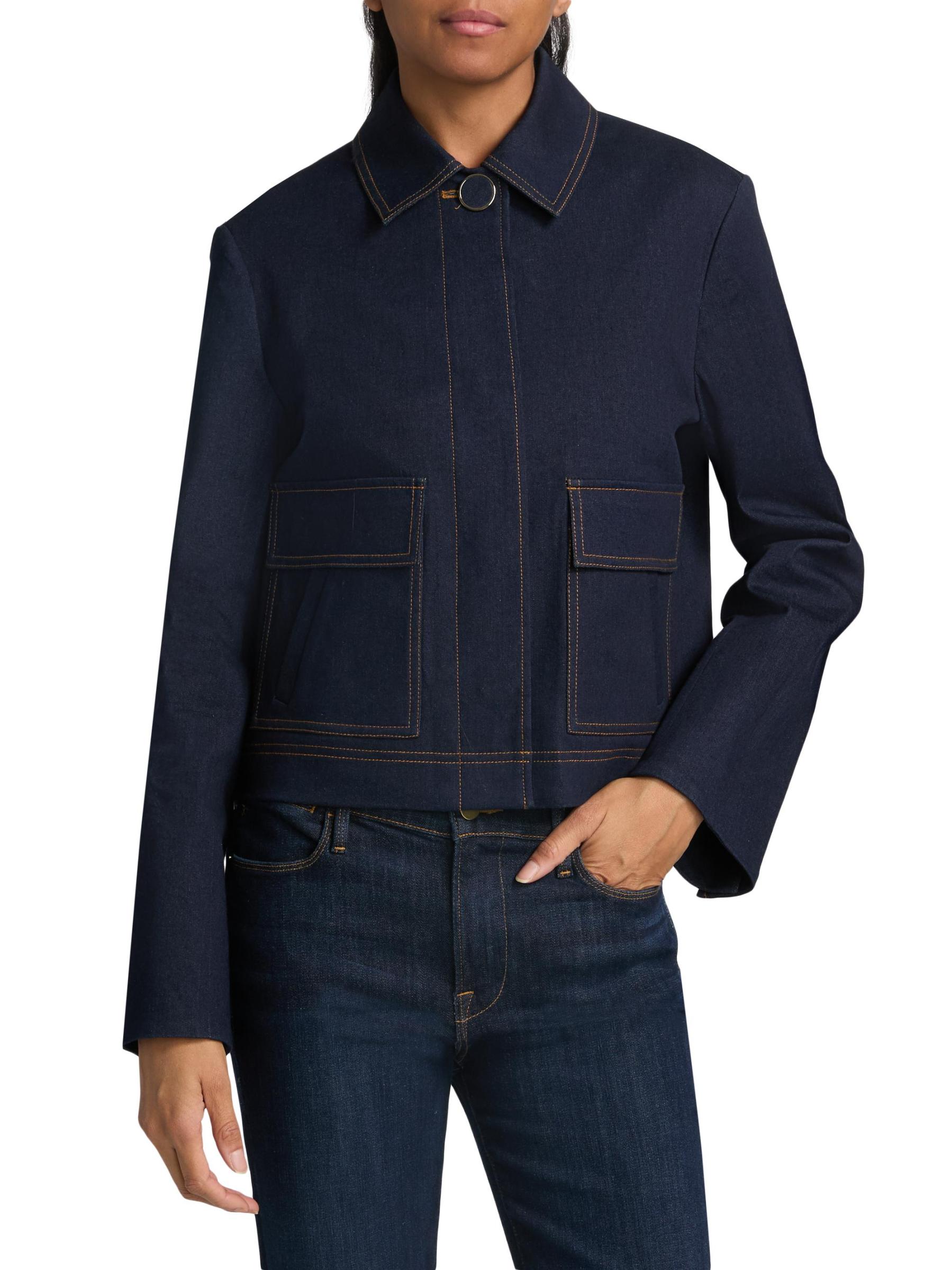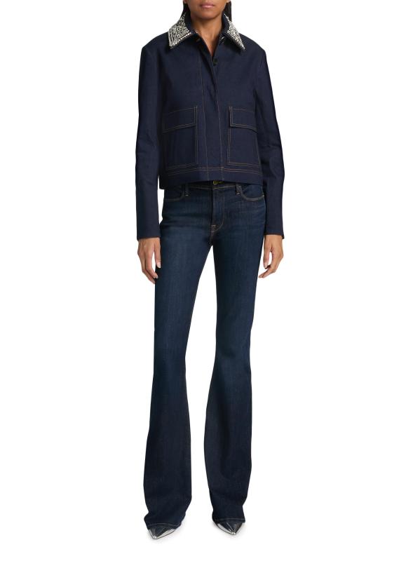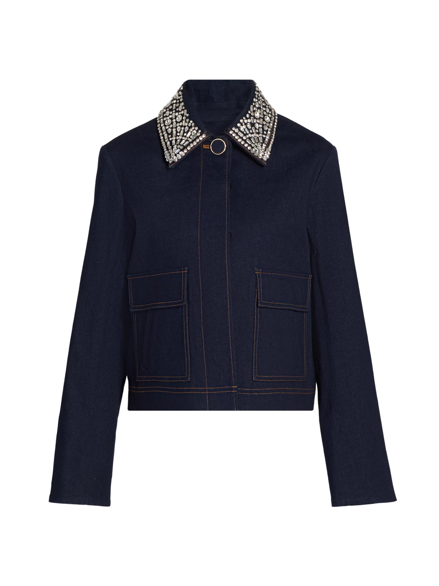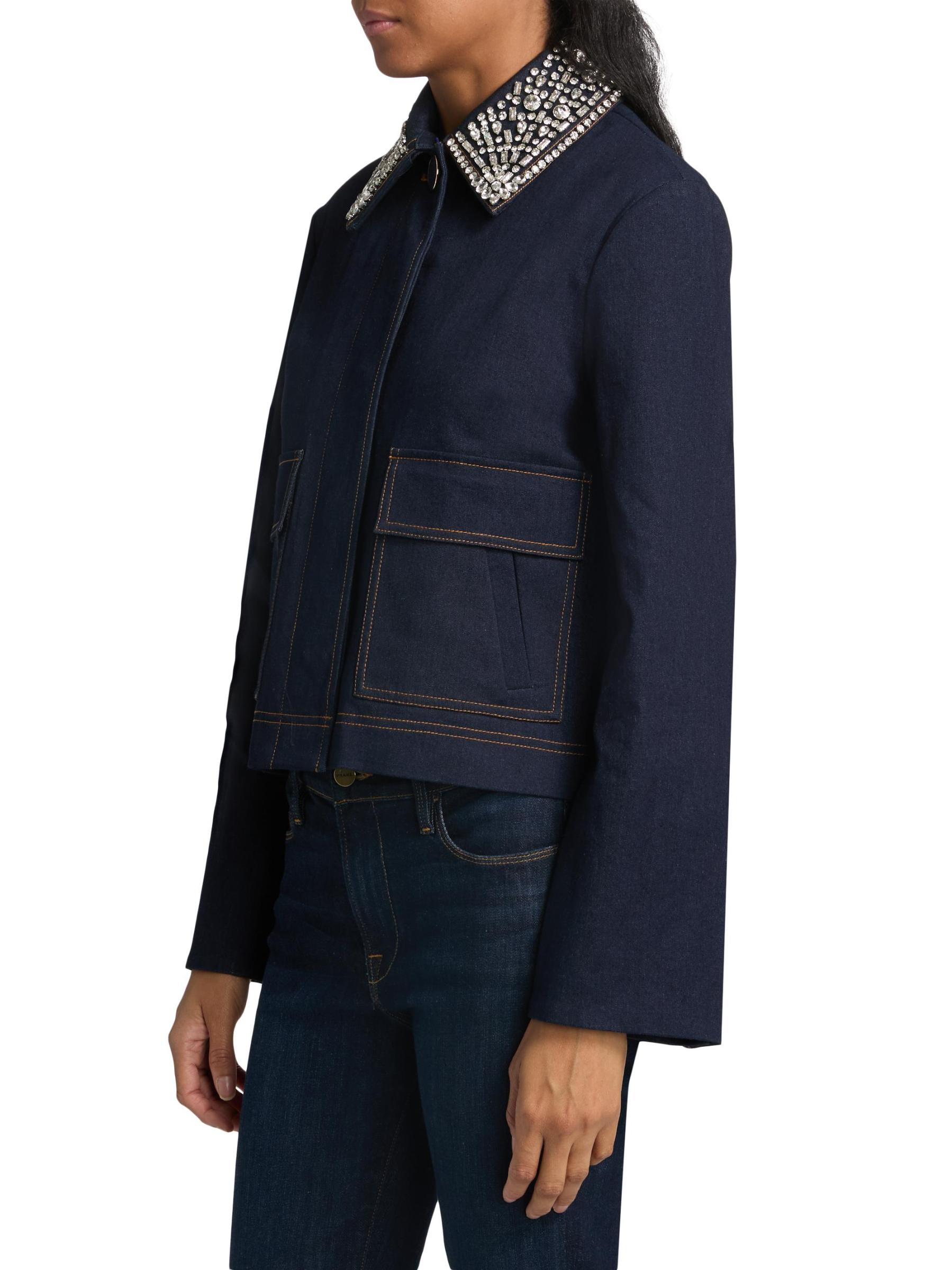 تتميّز سترة Barrington من Veronica Beard المصنوعة من الدنيم القطني المرن بياقة مزيّنة تضفي لمسة من التألق.