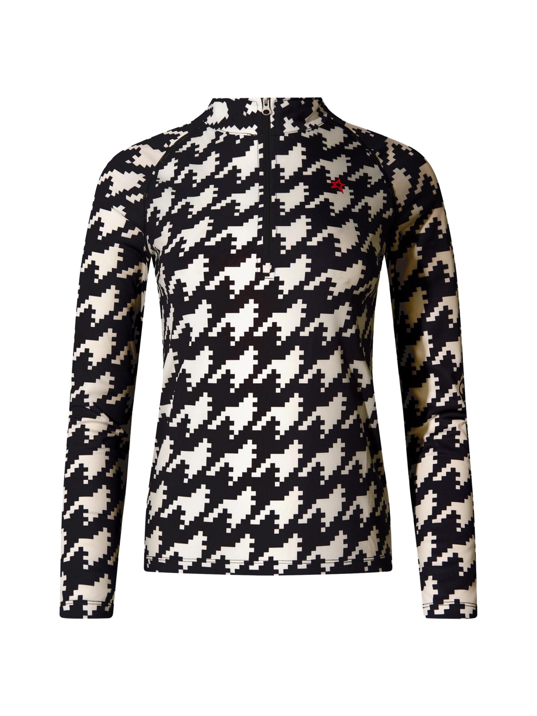 تم تصميم هذه البلوزة ذات الطبقة الأساسية من Perfect Moment بطبعة هاوندستوث الجريئة وياقة حامل وفتحة بسحّاب ربع.ياقة ستاند أكمام طويلة إغلاق بسحّاب أمامي 100% بوليستر يُغسل في الغسالة مستوردة