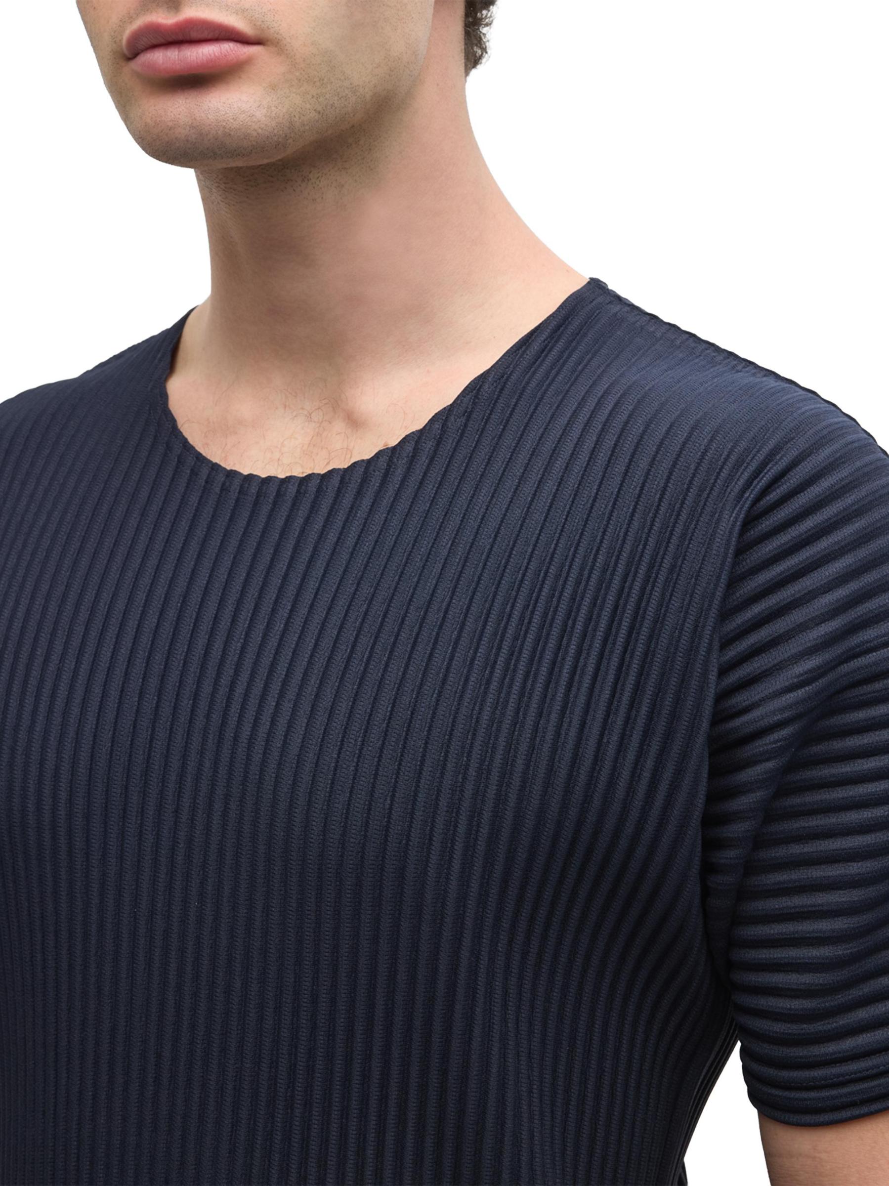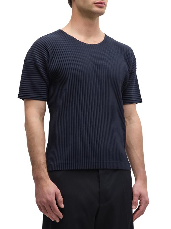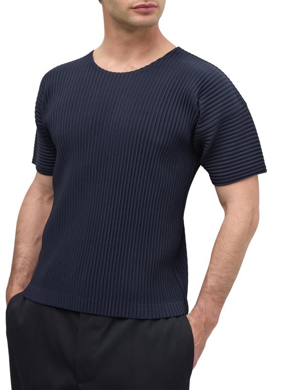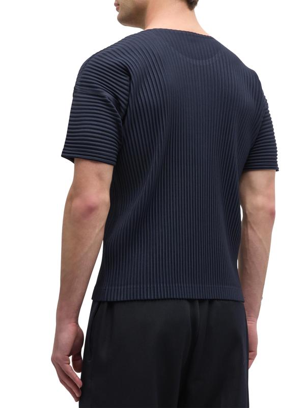 من مجموعة الأساسيات. يتميز تيشيرت Homme Plissé Issey Miyake ذو الرقبة المستديرة بأكمام قصيرة وتصميم مطوي مميز للعلامة التجارية.