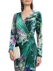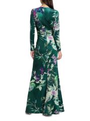 يتميز هذا الفستان المخملي الزهري من Teri Jon من Rickie Freeman بلمسة من الخرز على الجانب مع تفاصيل مجمعة.