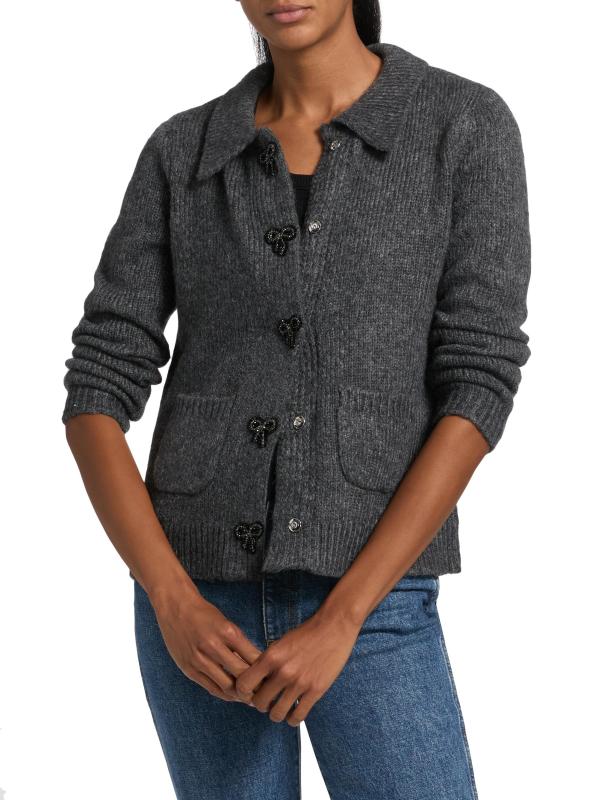 يتميز كارديجان Design History بياقة مدببة وجيوب مرقعة ومزين بأزرار فيونكة مطرزة.