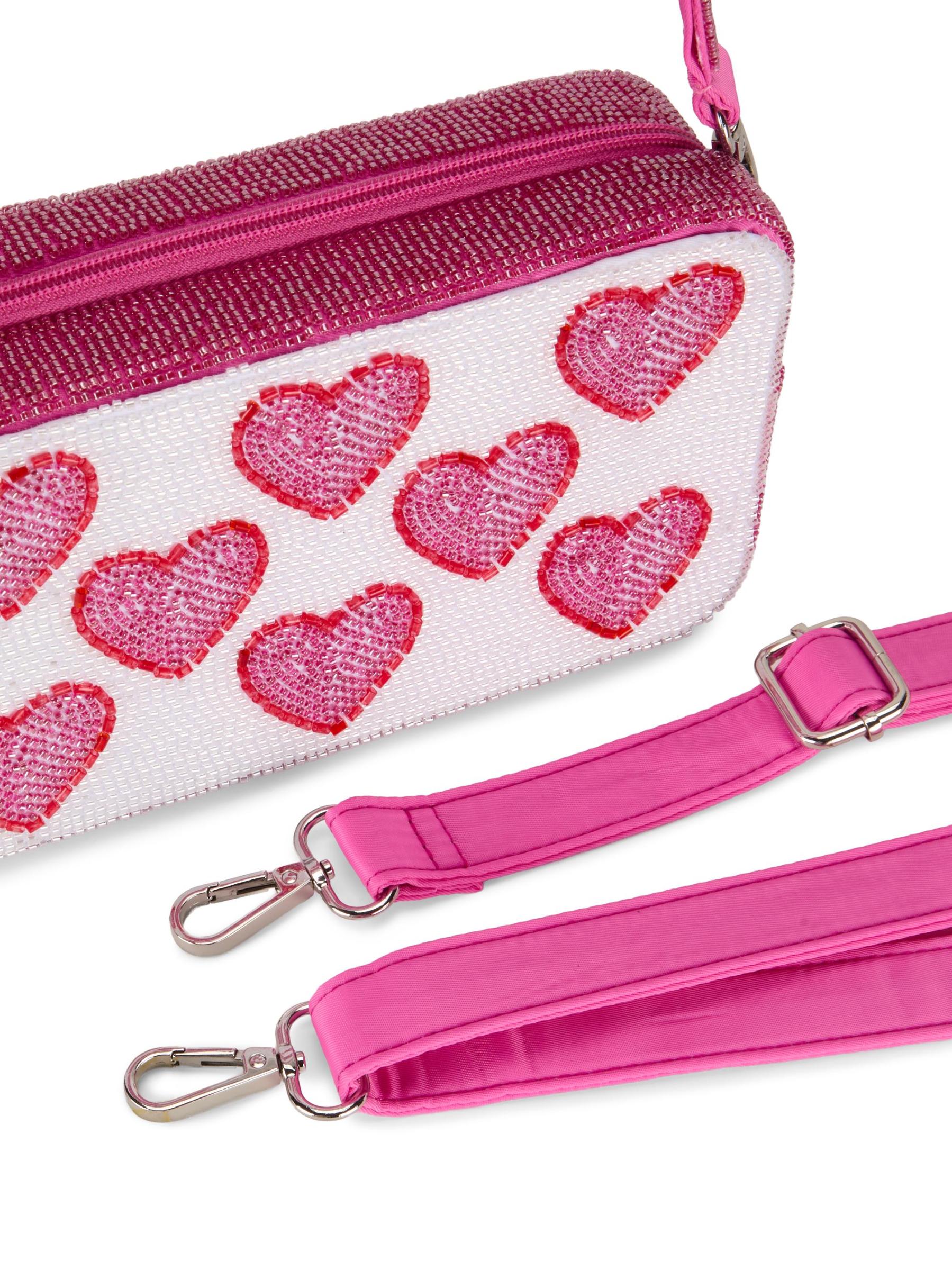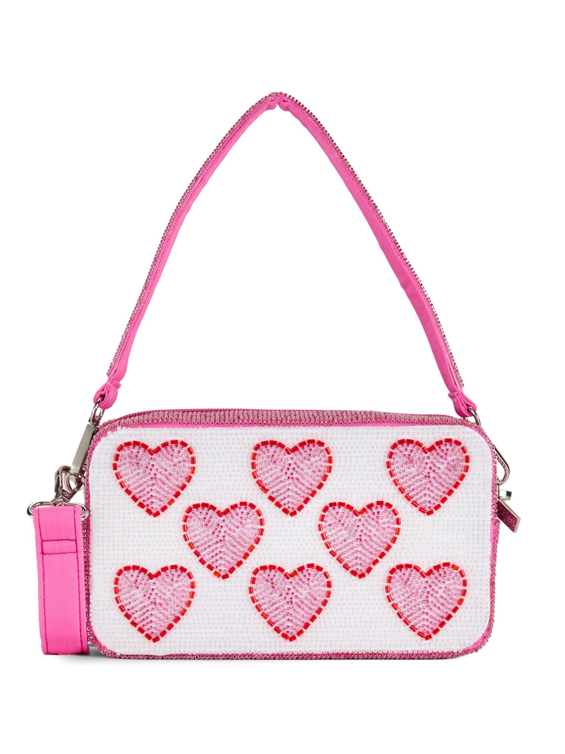 تتميز حقيبة الكتف Camera من Bari Lynn بتصميم قلب ساحر ومصنوعة من الزخارف المرحة المزيّنة بالخرز.