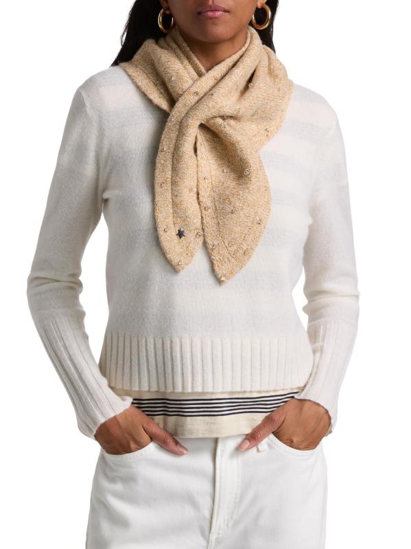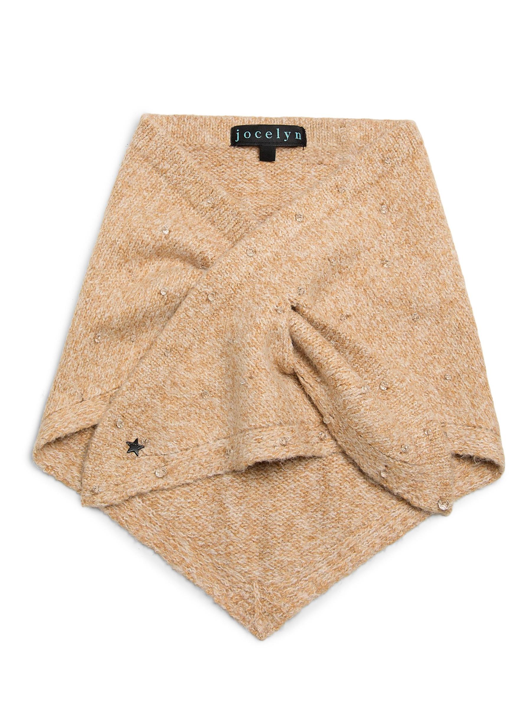 يُزيّن هذا الوشاح الناعم من جوسلين بخرز لامع. النمط محبوك وقابل للتمدد في شكل مثلث.