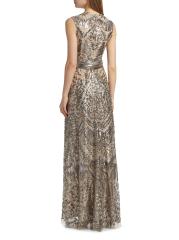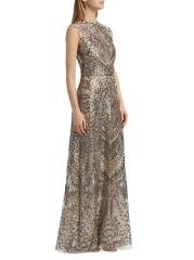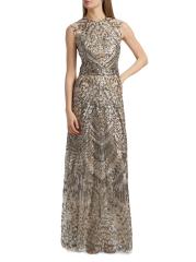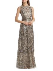 يُبرز فستان ريم آركا الأنيق قاعدة التول الخفيف مع الخرز المعدني اللامع، مما يخلق تصميمًا مستوحى من فن الآرت ديكو. تتميز هذه القطعة بتقويرة على شكل جوهرة وقصة بلا أكمام.رقبة على شكل جوهرة بدون أكمام إغلاق بسحّاب خلفي مخفي 65% بوليستر/ 35% خيوط معدنية البطانة: 100% بوليستر تنظيف جاف صُنع في الولايات المتحدة الأمريكية من قماش مستورد