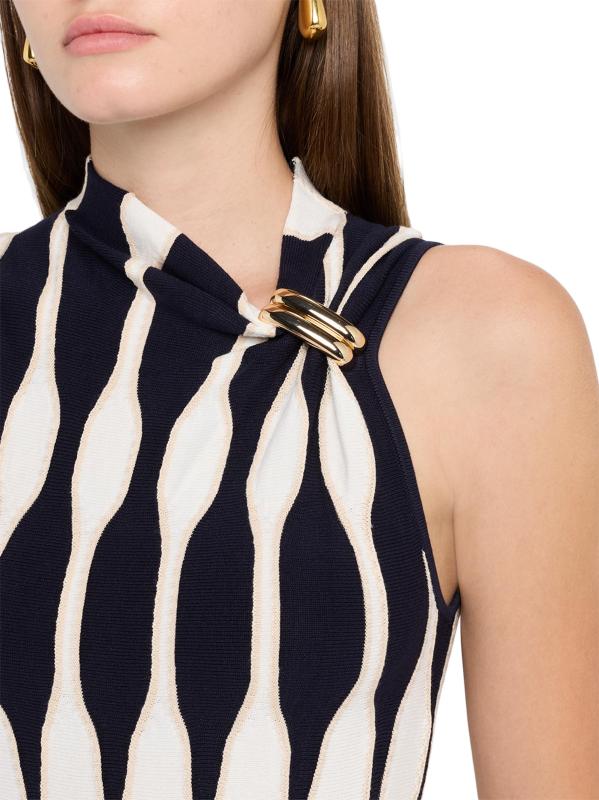 يُبرز فستان Beaford maxi من Acler، المزين بزخارف متباينة جريئة وأجزاء صلبة ذهبية اللون، صورة ظلية راقية من نسيج مطاطي مريح.فتحة رقبة عالية بدون أكمام تسحب 100% بوليستر غسيل يدوي مستوردة