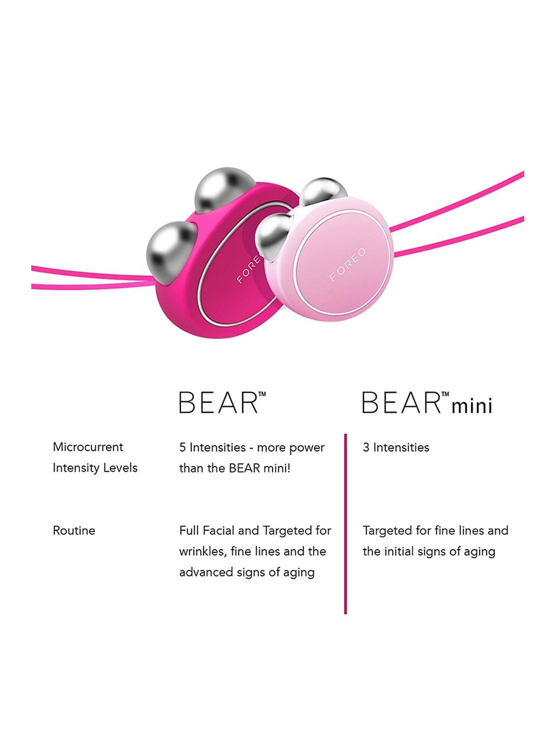 BEAR™ هو جهاز يعمل بالتيار المتناهي الصغر يعمل على تحفيز البشرة وتوحيد لونها. يستهدف علامات التقدم في السن المتقدمة للحصول على بشرة أكثر تماسكًا وملاءمة. يعزز امتصاص المنتج ويدلك الوجه بلطف لتعزيز إشراق البشرة. يستخدم أجهزة استشعار فائقة الذكاء لمسح وقياس مقاومة الجلد 100 مرة في الثانية. يضبط تلقائيًا شدة التيار المتناهي الصغر في 0.002 ثانية للقضاء على أي فرصة لتيار ميكروي يصدم الجلد. يقوم بمزامنة التفضيلات تلقائيًا مع الجهاز. يشارك تمارين اللياقة البدنية للوجه المحددة مسبقًا. يوفر الوصول إلى نطاق أوسع من شدة التيار الصغير. منحنية بلطف لتناسب ملامح الوجه. سيليكون آمن للجسم. مستوردة.