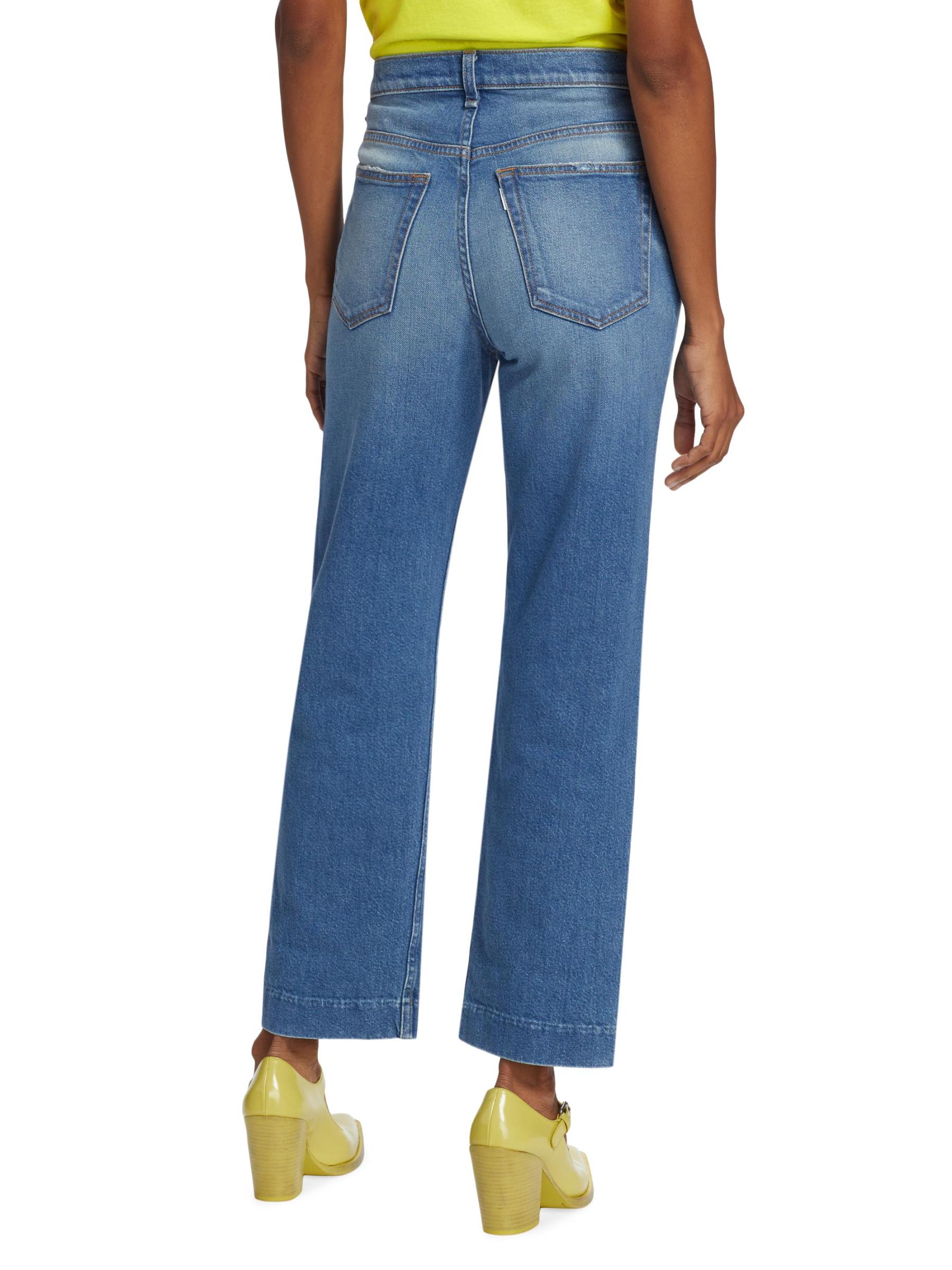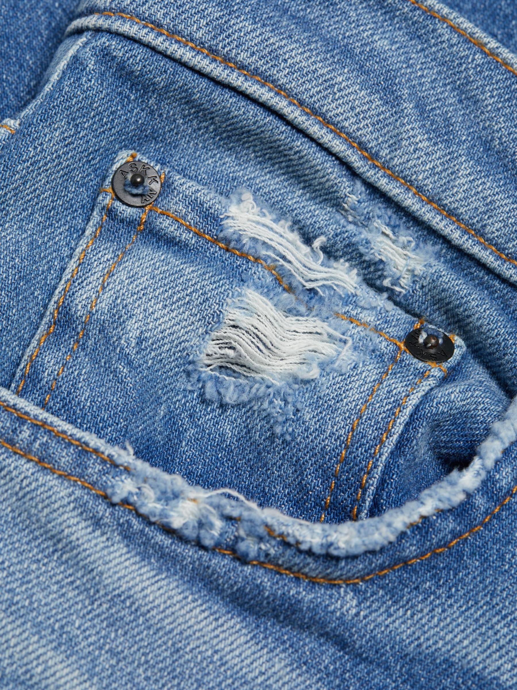 يتميز بنطال جينز Beau من ASKK NY بتصميم مرتفع ذو أرجل مستقيمة ومصنوع من الدنيم الصلب. يضفي الضوء المؤلم والبهتان لمسة نهائية على المظهر.