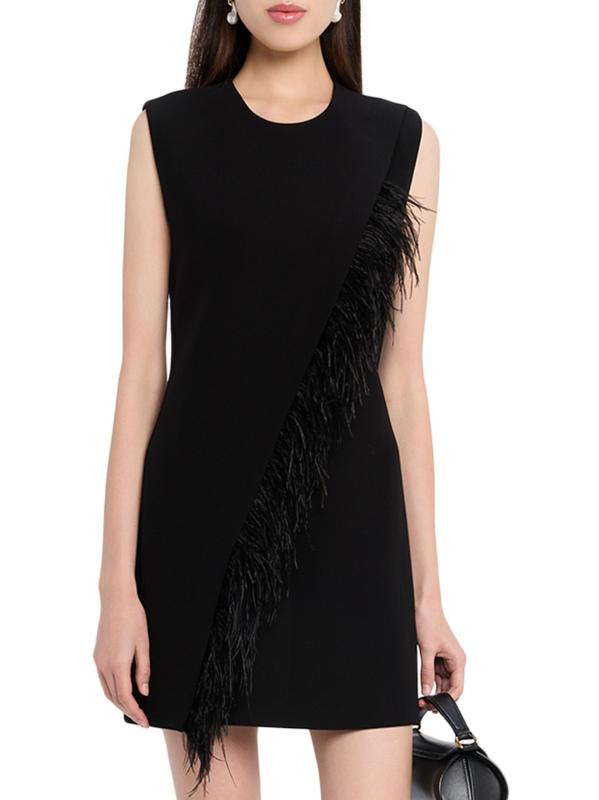 مصنوع من الساتان المدعم بالكريب، A.L.C.» تم تصميم فستان S Beck القصير بدون أكمام بزخرفة من ريش النعام.رقبة مستديرة بدون أكمام إغلاق بسحّاب خلفي مخفي فيسكوز 100% البطانة: 100% بوليستر تنظيف جاف مستوردة