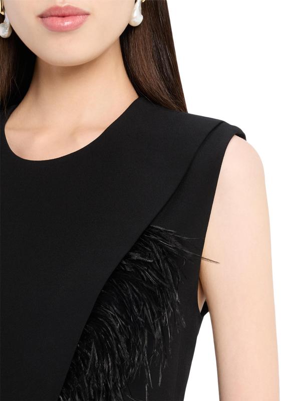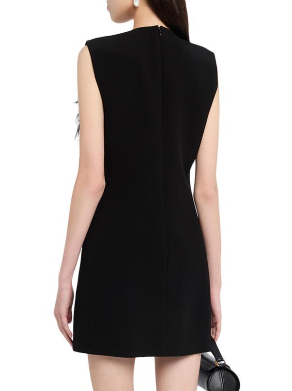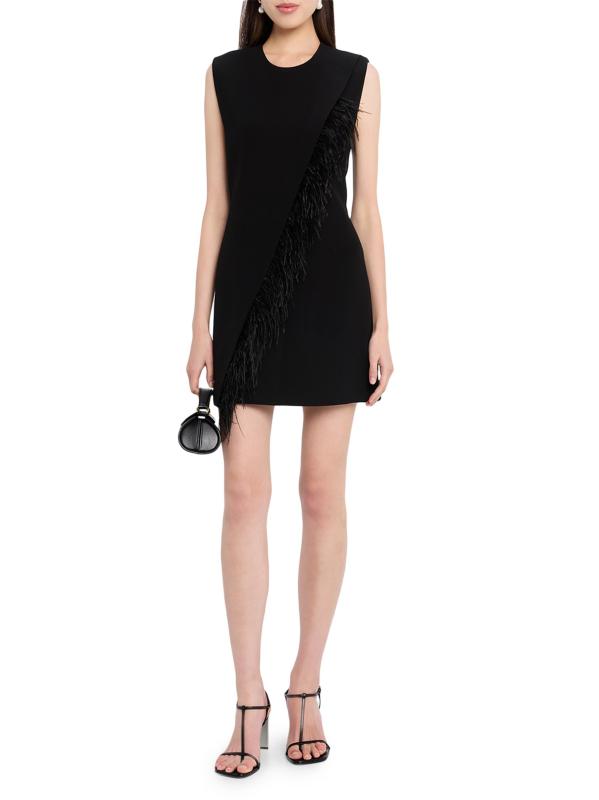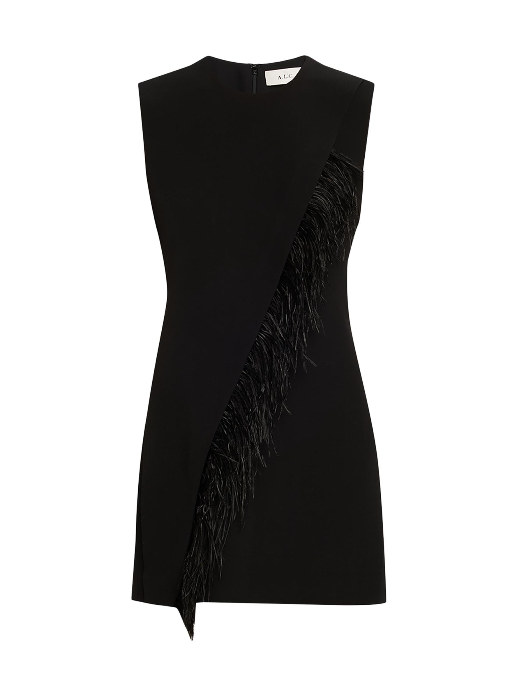 مصنوع من الساتان المدعم بالكريب، A.L.C.» تم تصميم فستان S Beck القصير بدون أكمام بزخرفة من ريش النعام.