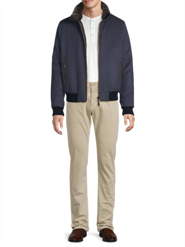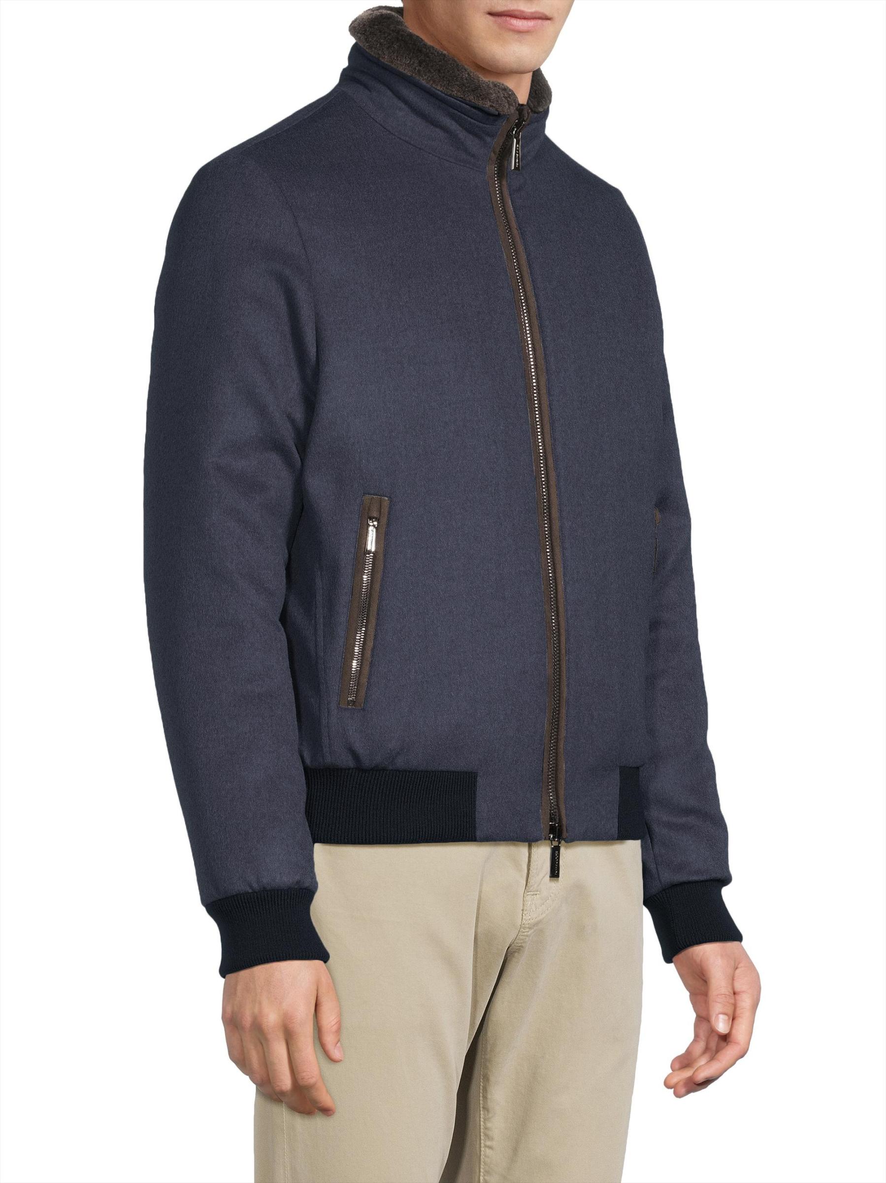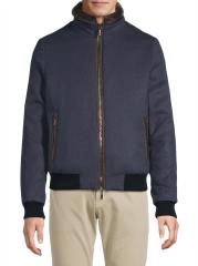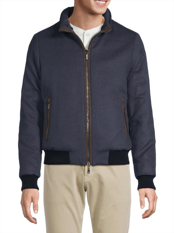 جاكيت بيلاتي من مورر مصنوع من الصوف الإيطالي والكشمير، ويتميز بياقة واسعة وجيوب أمامية بسحّاب.