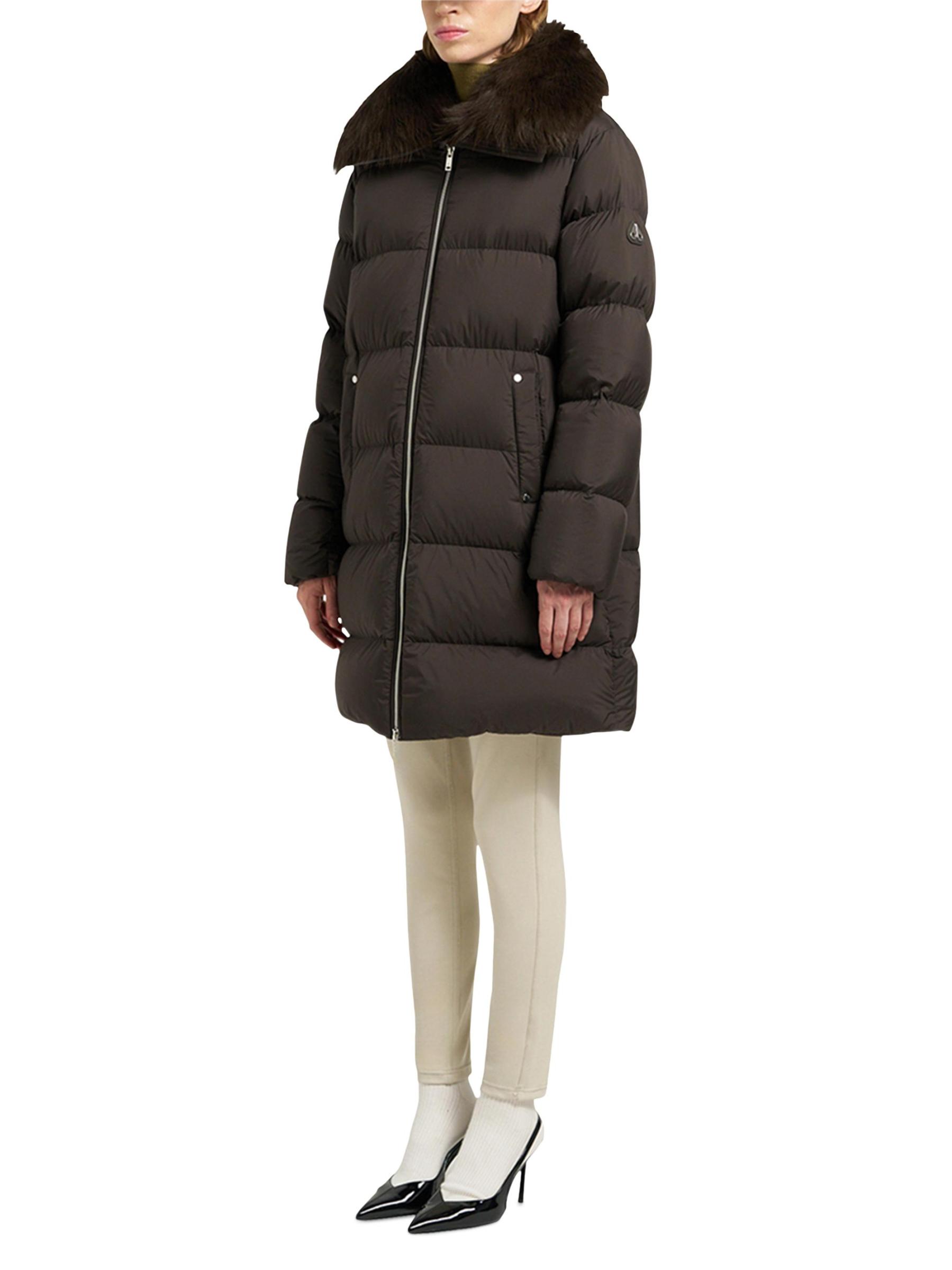 تتميز سترة Belle Dune الطويلة هذه من Moose Knuckles بياقة ممتلئة بالفرو الصناعي وجيوب جانبية.