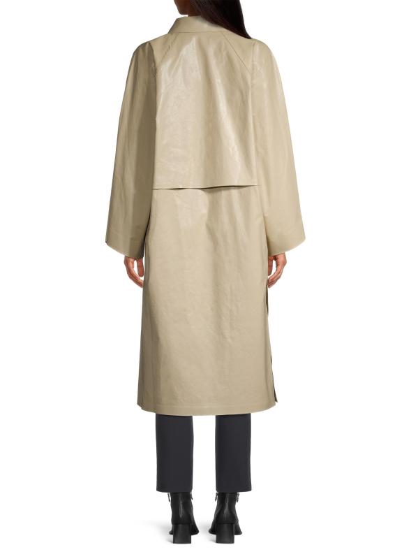 معطف كيمونو متطور مع إغلاق كبس وأكمام ريجلان طويلة.