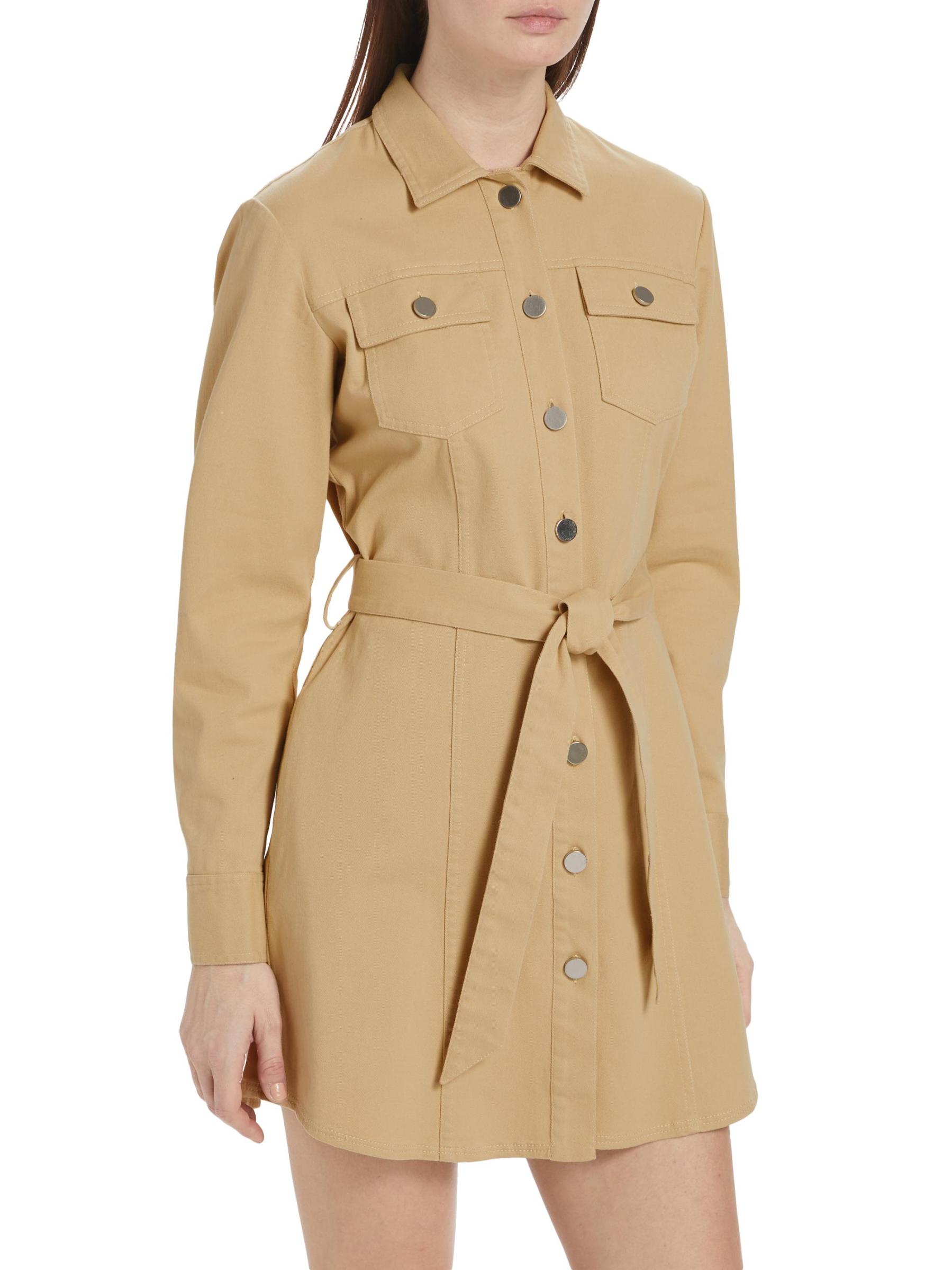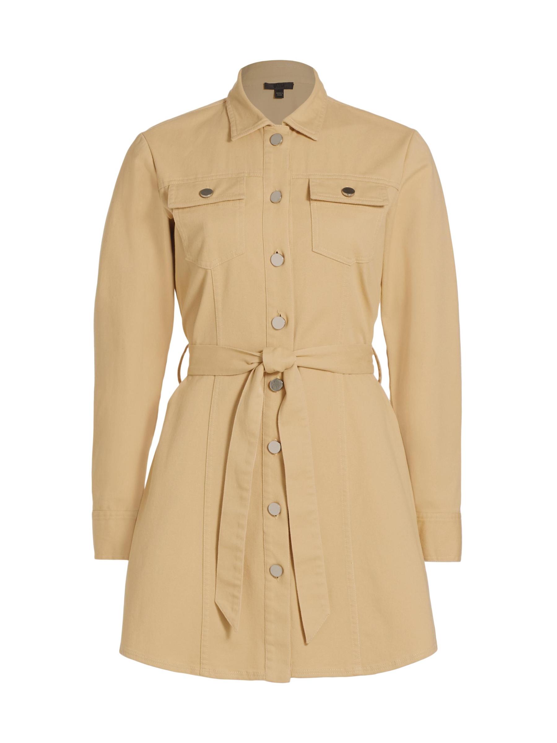 يتميز هذا الفستان المصنوع من نسيج قطني طويل من ATM Anthony Thomas Melillo بجيوب على الصدر وحزام قابل للربط الذاتي.طوق سبريد أساور بأزرار بأكمام طويلة جيوب بغطاء على الصدر حزام ربط ذاتي جيوب جانبية إغلاق بأزرار أمامية 98% قطن/ 2% سباندكس يُغسل في الغسالة مستوردة