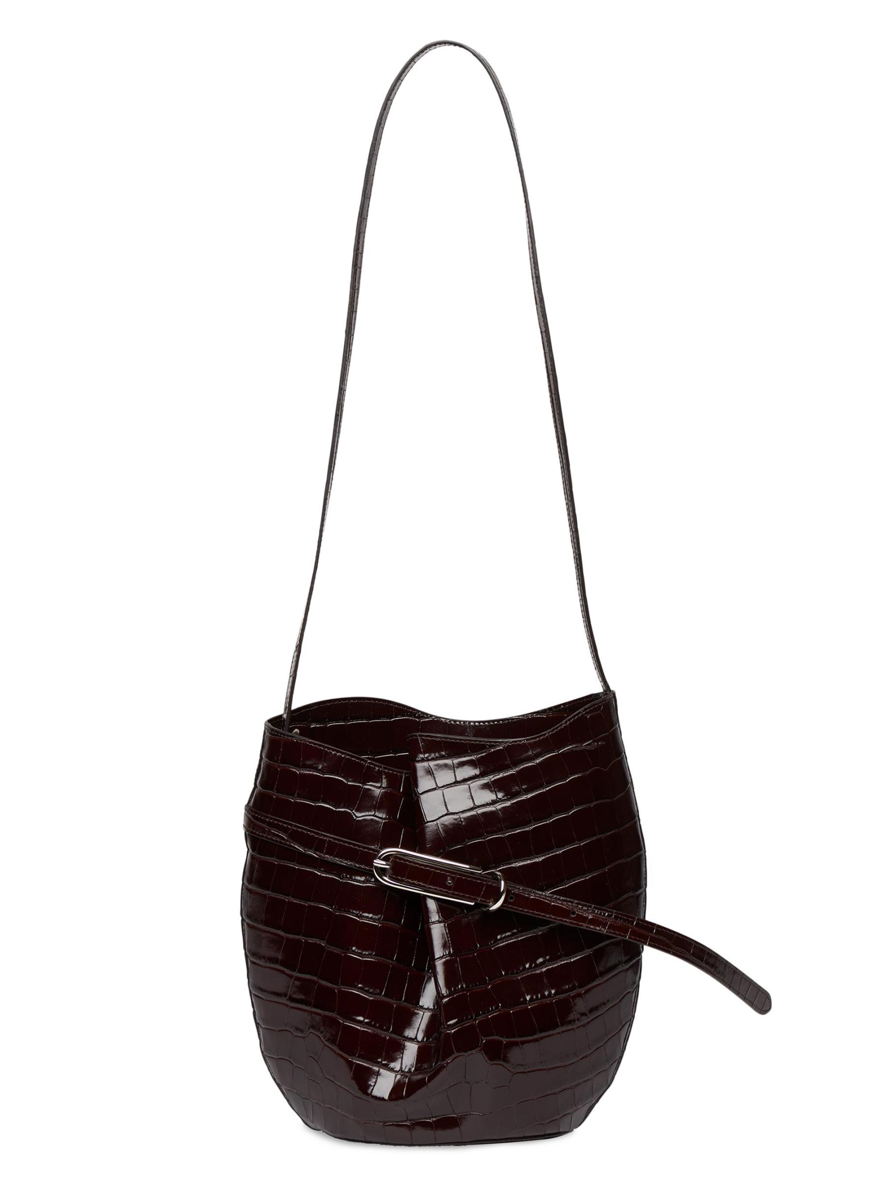 حقيبة دلو جلدية بحزام منقوش بالتماسيح