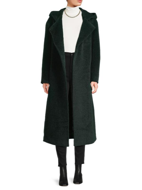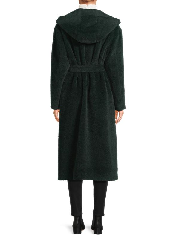 يشمل معطف Cinzia Rocca الطويل، المصنوع من الصوف والألبكة، غطاء للرأس وحزام قابل للربط الذاتي.