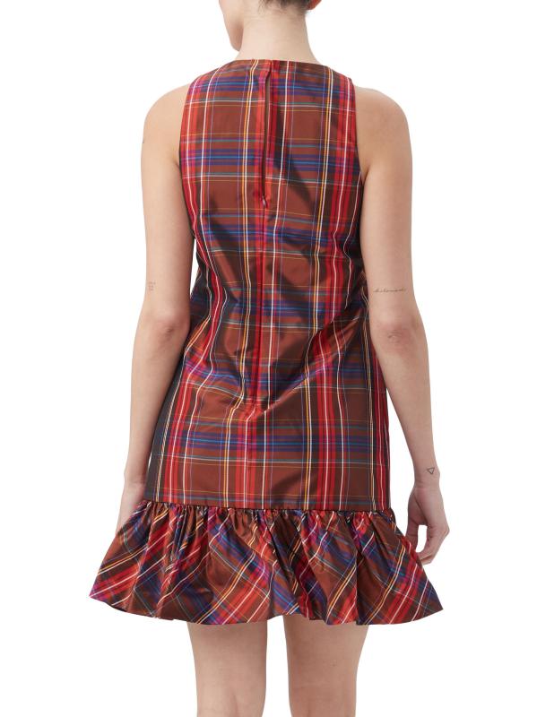 يتميّز فستان «بيري تافتا» المُزين بغمد بنقشات من ترينا تورك برقبة دائرية خالدة، وقصة بلا أكمام، وحاشية منسّقة مرحة.