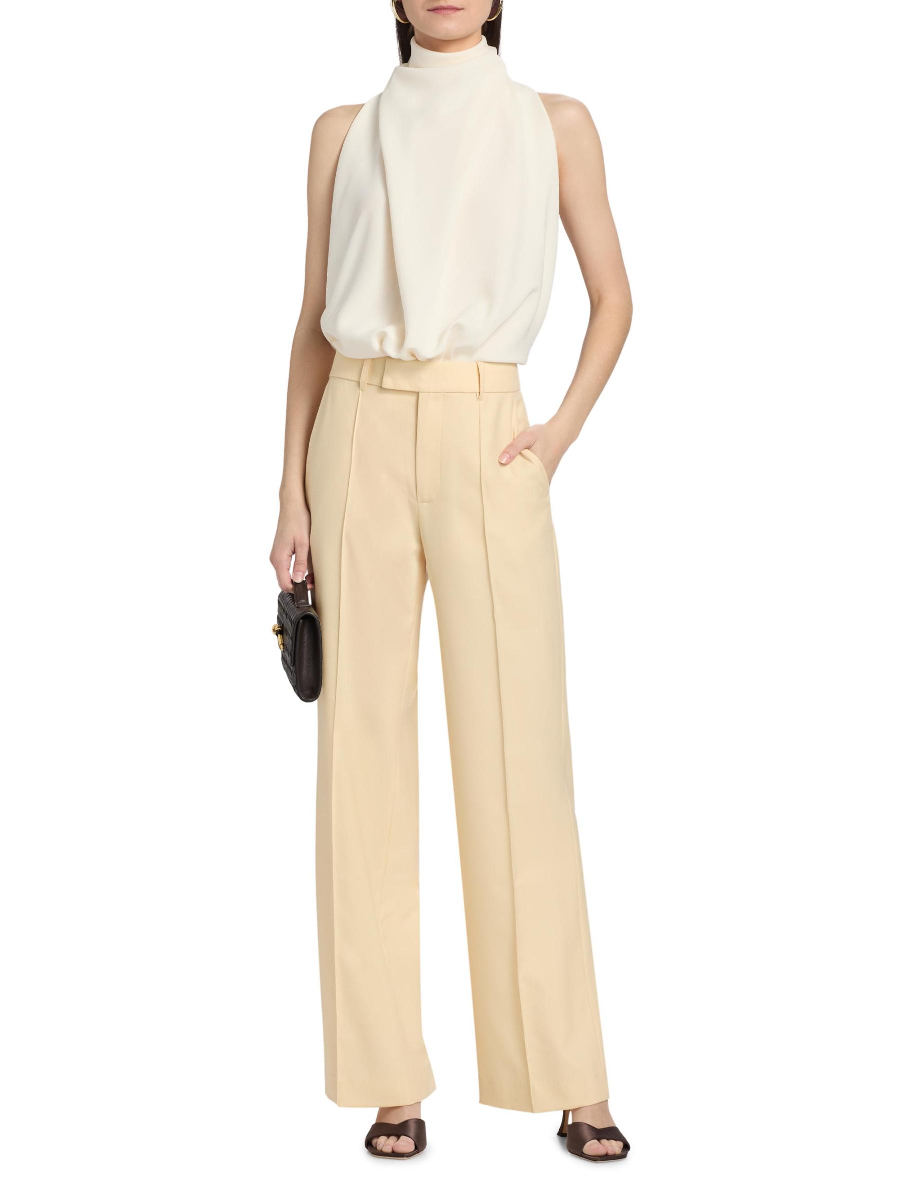 تم تصميم بدلة Bethe ذات الثنيات من Ronny Kobo برقبة رسن وظهر مفتوح.رقبة هالتيرنك بدون أكمام إغلاق بقفل مقوى 68% أسيتات/32% بوليستر تنظيف جاف مستوردة