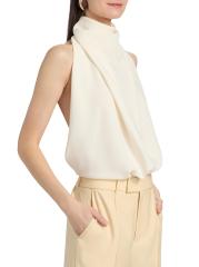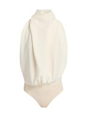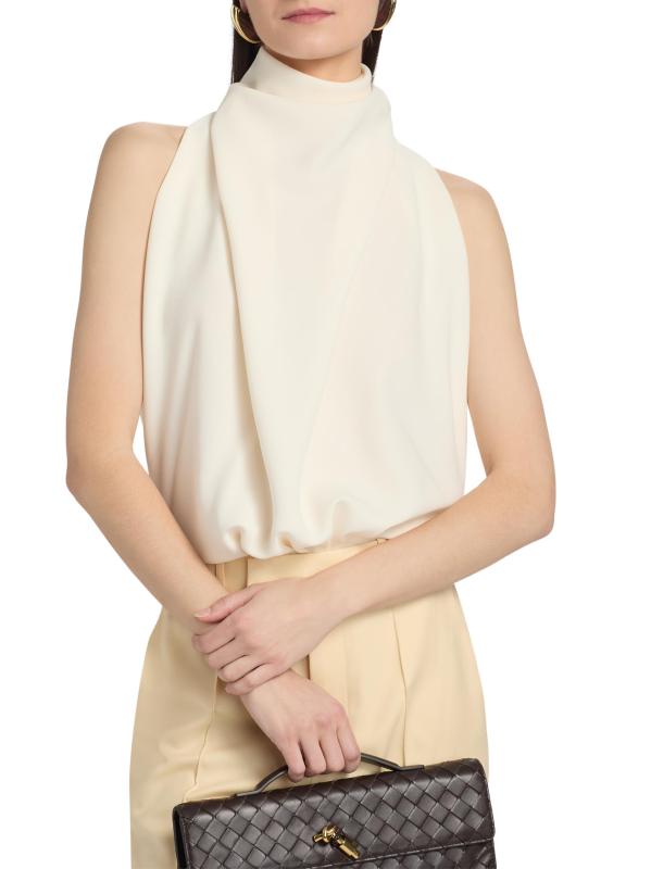 تم تصميم بدلة Bethe ذات الثنيات من Ronny Kobo برقبة رسن وظهر مفتوح.