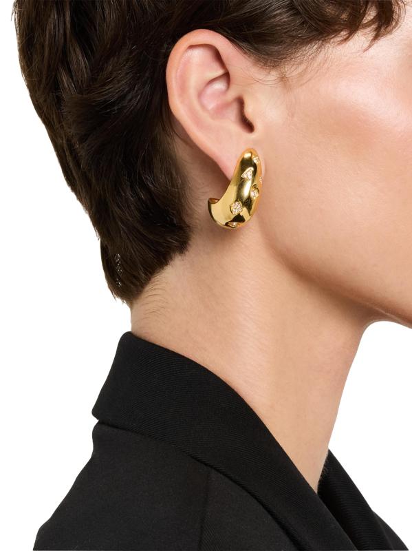 تم تصميم أقراط Bettina المطلية بالذهب عيار 22 قيراطًا من إليزابيث كول على شكل دمعة وتتميز بلمسات من الكريستال اللامع.