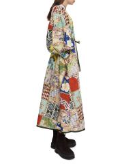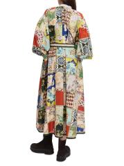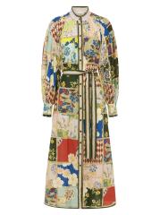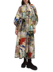 يشكل حزام الربط الذاتي خصر فستان بيانكا المطبوع بنمط مرقع من Alémais.طوق الفرقة أكتاف منسدلة أكمام بالون طويلة حزام ربط ذاتي إغلاق بأزرار أمامية 50% قطن/ 50% حرير تنظيف جاف مستوردة