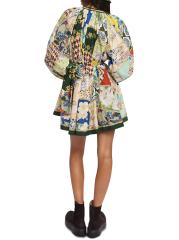 يتميز فستان بيانكا الصغير من Alémais بتصميم خيمة مع تصميم متعدد الأنماط بأسلوب مرقع.رقبة على شكل حرف V مع ربطات ذاتية أكمام بالون طويلة تسحب 50% قطن/ 50% حرير تنظيف جاف مستوردة