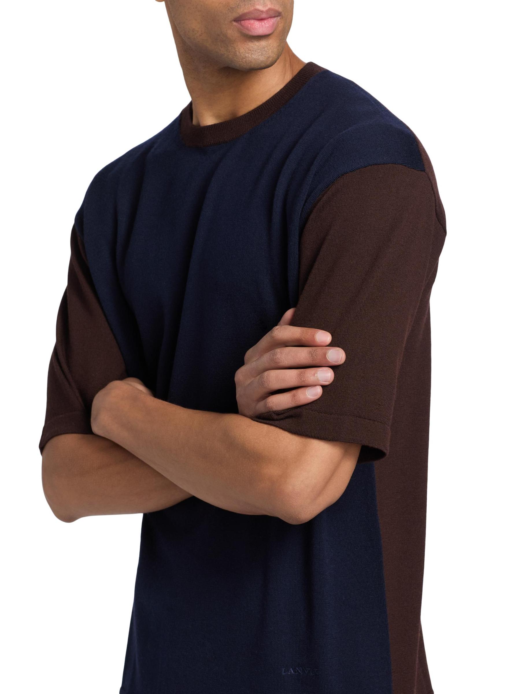يتميز هذا التيشيرت من لانفين، المصنوع من القطن، بنمط ثنائي اللون مميز مع لوحة أمامية متباينة.