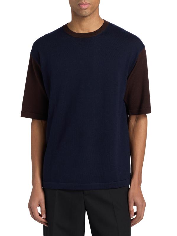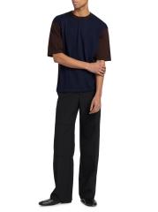تي شيرت محبوك ثنائي اللون