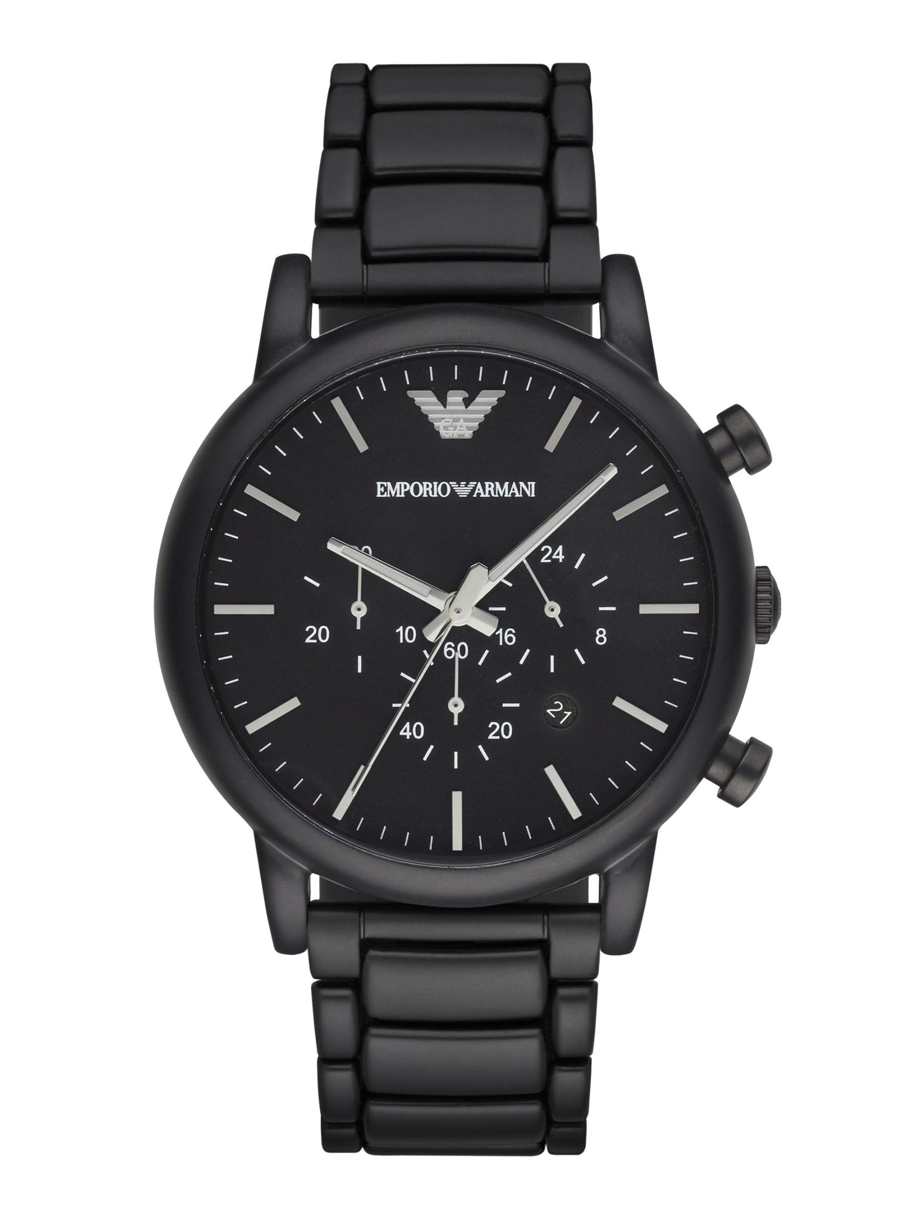 ساعة بسوار كرونوغراف مطلي باللون الأسود من الفولاذ المقاوم للصدأ