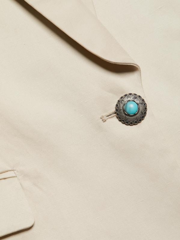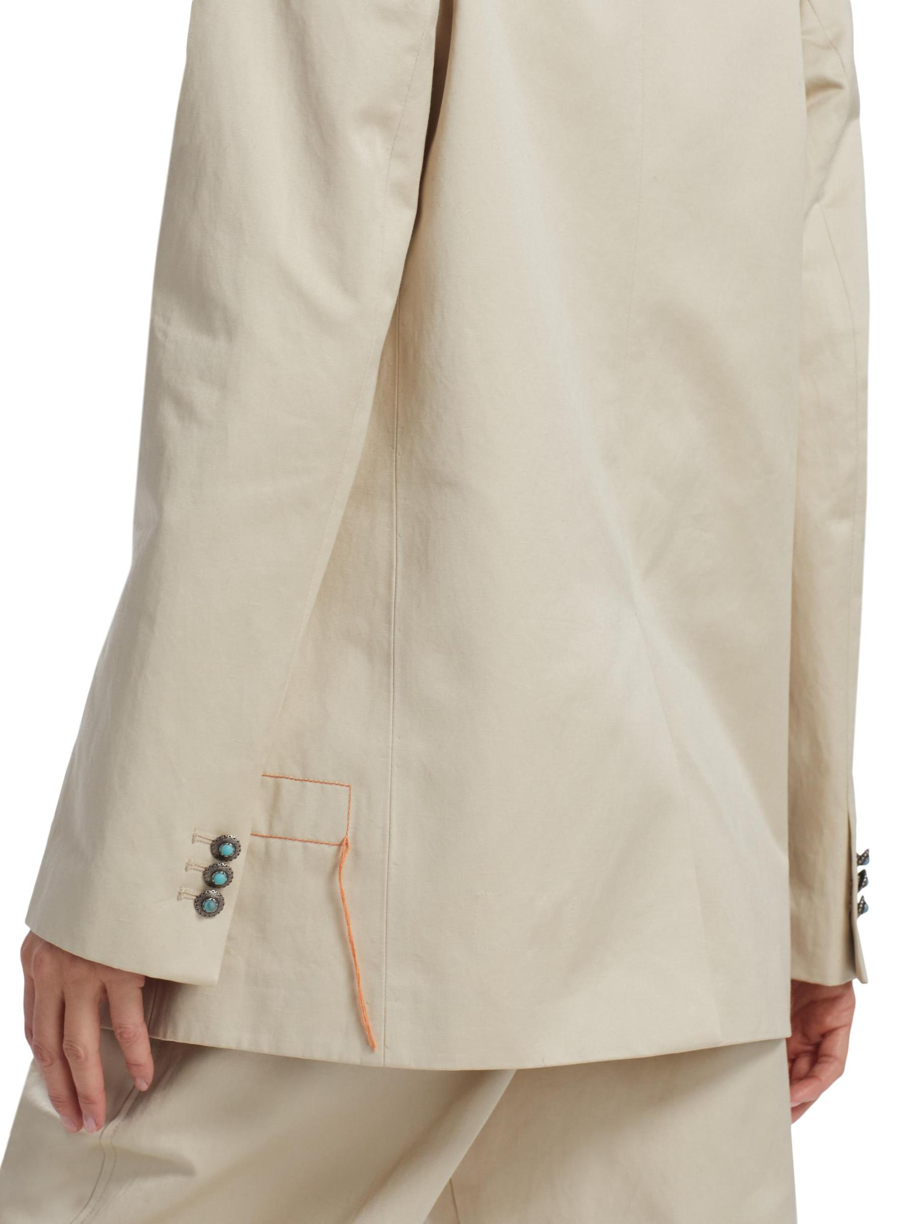 تتميز سترة Blaire القطنية من Fortela بتصميم مريح مع ثنيات على شكل شال. تضفي تفاصيل الأزرار الفيروزية البارزة مزيدًا من الأناقة على المظهر.
