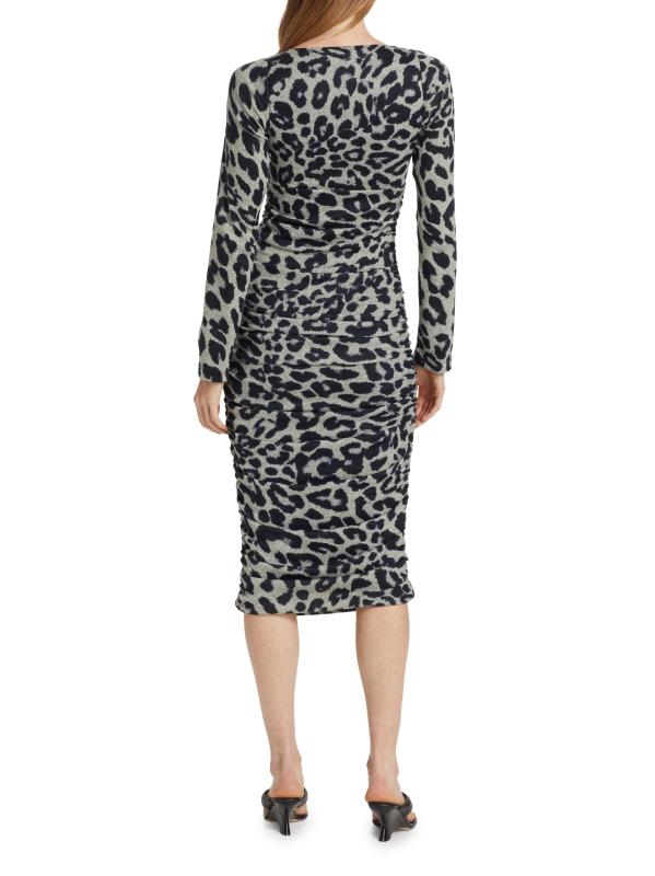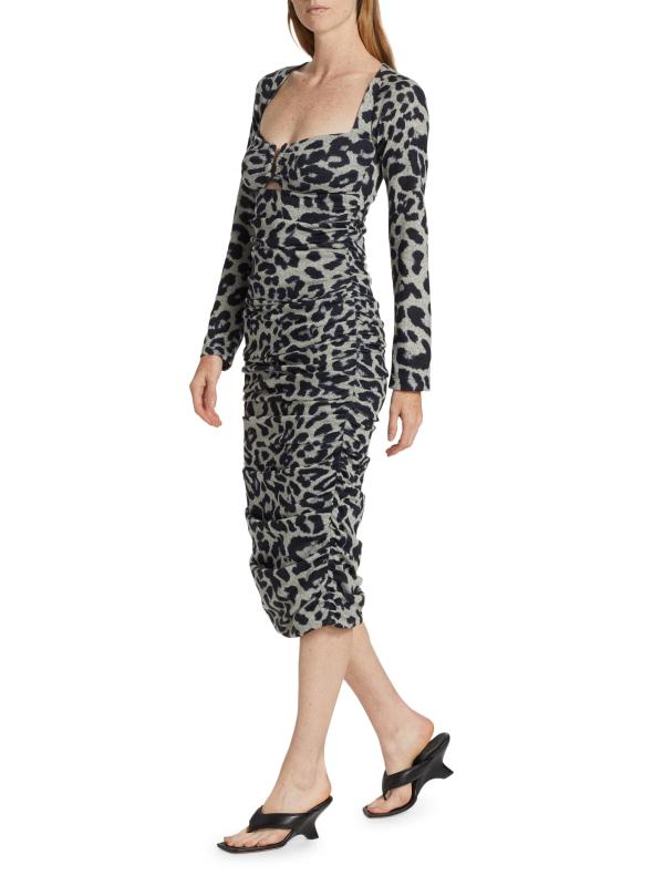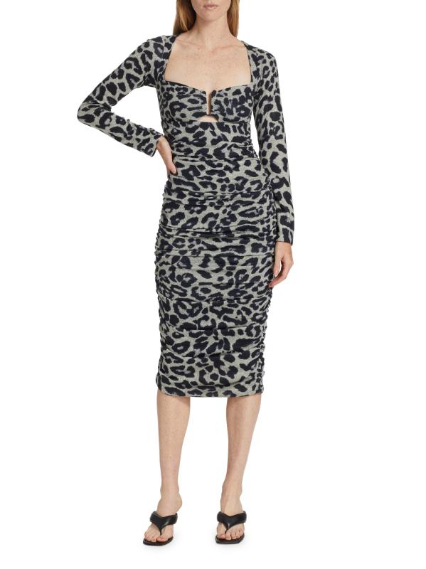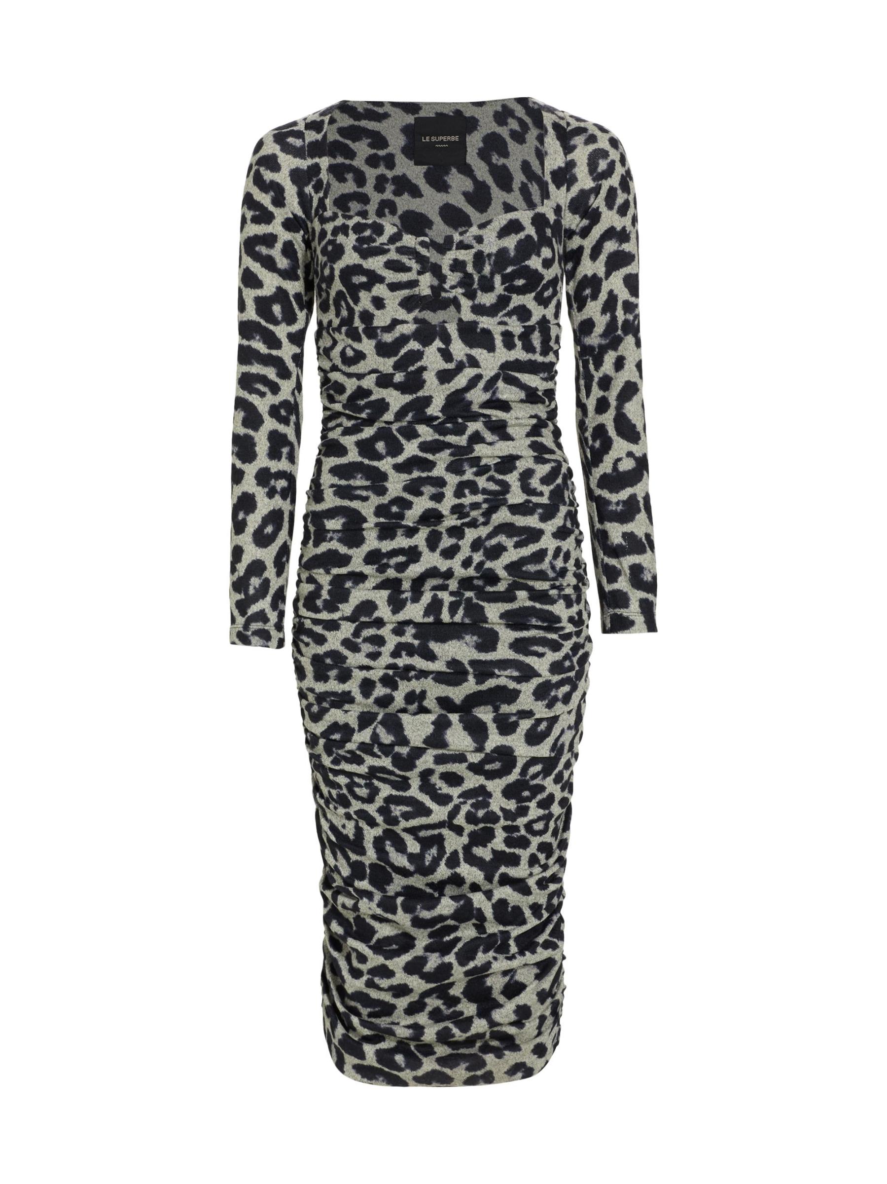 يتميّز فستان Blondie midi متوسط الطول من Le Superbe بتصميم مزركش وأكمام طويلة وفتحة أمامية.