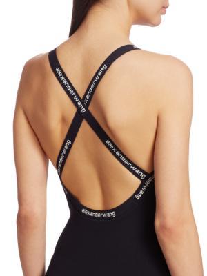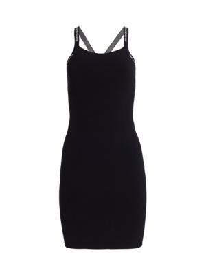 تُؤطر أحزمة الشعار هذا الفستان بدون أكمام المصمم على طراز الشارع.